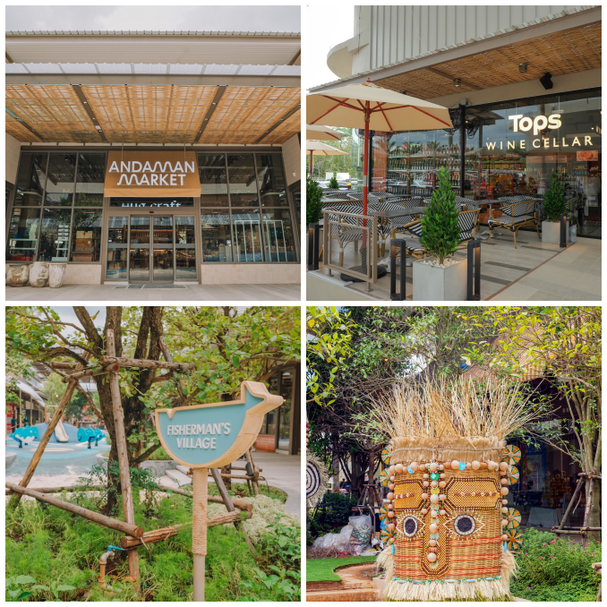 Andaman Market โซนตลาด หลังคาอาคารออกแบบโดยใช้รูปทรง “เรือหัวโทง” พาหนะหลักมนการทำประมง อีกหนึ่งเอกลักษณ์ของจังหวัด นำมาซ้อนกันเป็นเลเยอร์ สะท้อนให้นึกถึงภาพการจอดเรือริมชายหาด