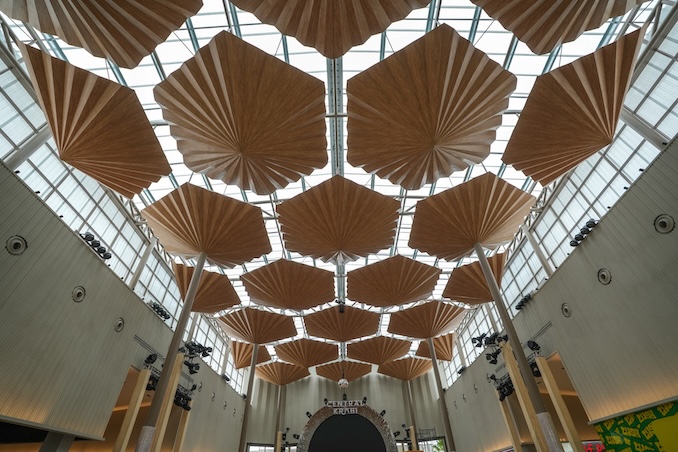 Palm Square พื้นที่โถงกลางตกแต่งเพดานด้วยเส้นสายรูปใบปาล์ม ให้ความรู้สึกเหมือนได้เดินอยู่ท่ามกลางสวนปาล์มเขียวชอุ่ม