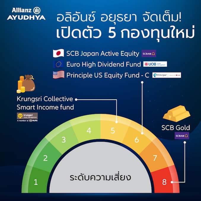 “อีกหนึ่งปัจจัยสำคัญ คือ การมีกองทุนที่หลากหลาย ตอบโจทย์การจัดพอร์ตที่สมดุลกับระดับความเสี่ยงที่เหมาะสมของลูกค้าแต่ละรายด้วยผลิตภัณฑ์ยูนิตลิงค์ วันนี้ จึงถือเป็นอีกหนึ่งโอกาสอันดี ที่อลิอันซ์ อยุธยา ได้เปิดตัว 5 กองทุนใหม่ ผ่านความร่วมมือกับบริษัทหลักทรัพย์จัดการกองทุนชั้นนำของประเทศ ได้แก่ บลจ.ไทยพาณิชย์, บลจ.ยูโอบี บลจ.กรุงศรี และบลจ.พรินซิเพิล เพื่อเพิ่มทางเลือกการลงทุนที่ครอบคลุมในหลากหลายสินทรัพย์