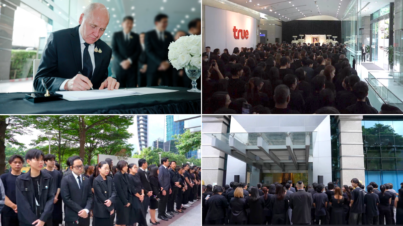 บมจ.ทรู คอร์ปอเรชั่น โดย ซิกเว่ เบรกเก้ ประธานคณะผู้บริหารกลุ่ม นำคณะผู้บริหารและพนักงานทรู คอร์ปอเรชั่น ทั่วประเทศ ร่วมพิธีแสดงความอาลัย เบื้องหน้าพระฉายาลักษณ์ สมเด็จพระนางเจ้าสิริกิติ์ พระบรมราชินีนาถ พระบรมราชชนนีพันปีหลวง ณ อาคารทรู ทาวเวอร์ ถนนรัชดาภิเษก ด้วยสำนึกในพระมหากรุณาธิคุณอันหาที่สุดมิได้ของ “พระมารดาแห่งแผ่นดิน” ผู้ทรงเป็นพระมิ่งขวัญและร่มโพธิ์ร่มไทรของปวงชนชาวไทย พระองค์ทรงเปี่ยมด้วยพระเมตตา ทรงบำเพ็ญพระราชกรณียกิจนานัปการเพื่อประโยชน์สุขของพสกนิกร จึงทรงเป็นศูนย์รวมแห่งความรัก ความศรัทธา และความผูกพันของคนไทยทั้งชาติ อันเป็นแรงบันดาลใจให้ทุกคนมุ่งมั่นสืบสานเจตนารมณ์แห่งความดีงามและดำเนินรอยตามเบื้องพระยุคลบาทสืบไป