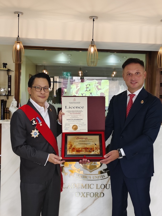 ด้วยวิสัยทัศน์ที่มุ่งมั่นที่จะพัฒนามาตราฐานการให้บริการการรักษาผู้มีบุตรยากในประเทศไทยก้าวไปสู่มาตราฐานระดับสากลอย่างต่อเนื่อง บริษัท กิฟท์ เฟอร์ทิลิตี้ จำกัด (Gift Fertility) ขอร่วมแสดงความยินดีในโอกาสที่นายศรายุธ อัสสมกร ประธานเจ้าหน้าที่บริหารกลุ่มบริษัท กิฟท์ เฟอร์ทิลิตี้ จำกัด ได้รับรางวัลอันทรงเกียรติ “ผู้บริหาร/องค์กรยอดเยี่ยมแห่งปี” (Best Manager/Best Enterprise of the Year) จากเวทีนานาชาติ Europe Business Assembly (The EBA Group), in partnership with the Academic Union Oxford ประเทศอังกฤษ