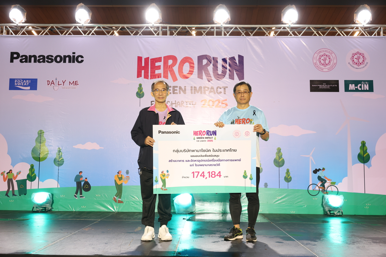 ภายในงานได้รับเกียรติจาก ฮิเดคาสึ อิโตะ ประธานเจ้าหน้าที่บริหาร กลุ่มบริษัทพานาโซนิคในประเทศไทย นำทีมพนักงานพานาโซนิค ครอบครัว และคู่ค้า พร้อมด้วยนักเรียนทุนพานาโซนิคฯ กว่า 1,400 คน เข้าร่วมกิจกรรม “Panasonic Hero Run Green Impact For Charity 2025” กิจกรรมปีนี้จัดขึ้นด้วยเป้าหมายสำคัญในการ “รวมพลังแห่งการให้” เพื่อร่วมสร้างระบบสาธารณสุขที่เข้มแข็งและยั่งยืน ผ่านการบริจาคเงินสมทบทุนแก่มูลนิธิโรงพยาบาลราชวิถี จำนวน 174,184 บาท เพื่อสร้างอาคารและจัดหาอุปกรณ์เครื่องมือทางการแพทย์ อาคารอุบัติเหตุและฉุกเฉิน โรงพยาบาลราชวิถี โดยมี นายแพทย์ไพโรจน์ เครือกาญจนา รองผู้อำนวยการด้านการแพทย์โรงพยาบาลราชวิถี เป็นตัวแทนรับมอบ