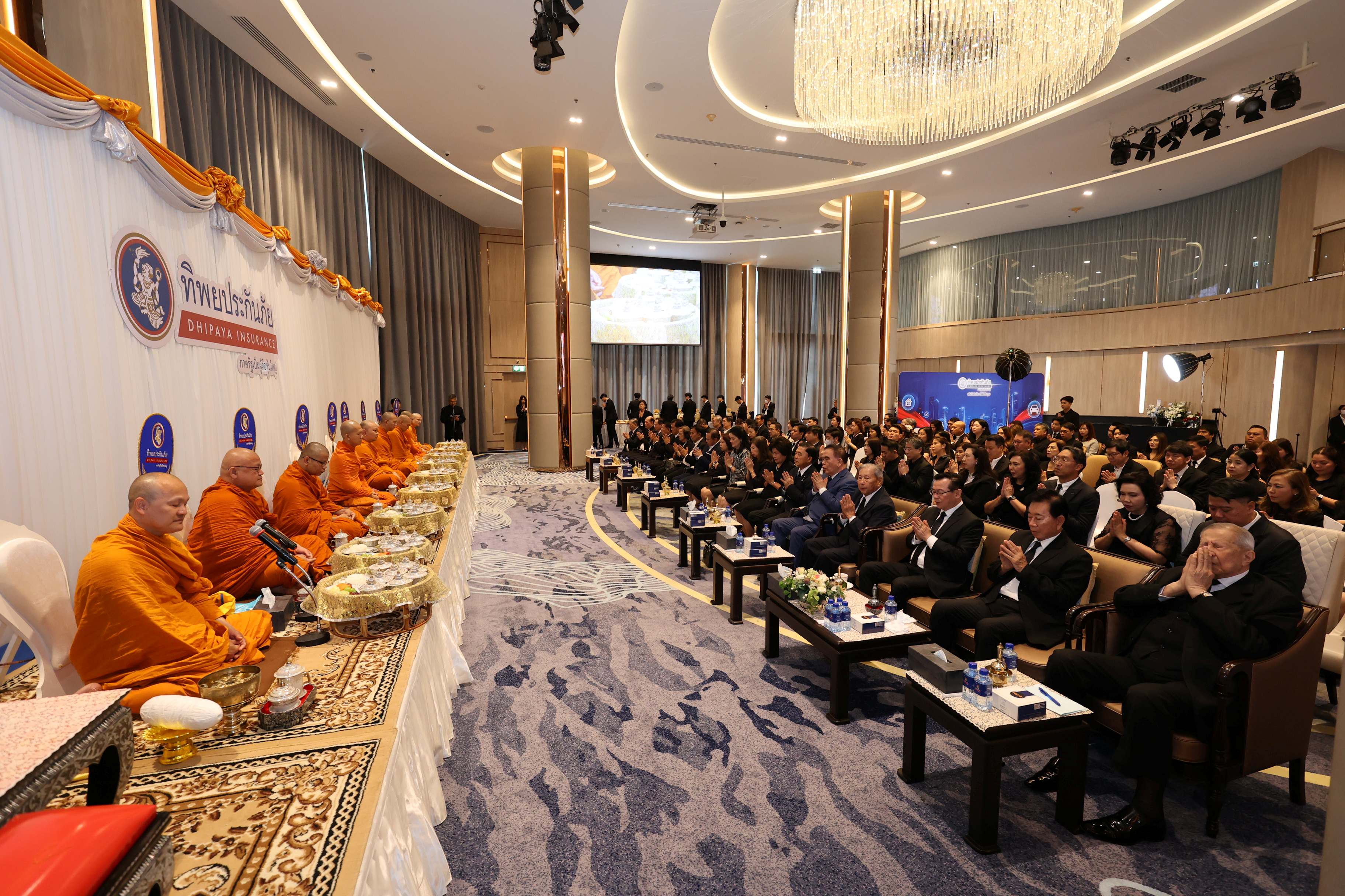 ภายในพิธี คณะผู้บริหารและพนักงานได้ร่วมกันทำบุญตักบาตรและบวงสรวงอนุสาวรีย์ ฯพณฯ จอมพลสฤษดิ์ ธนะรัชต์ ผู้ก่อตั้งบริษัท ทิพยประกันภัย จำกัด (มหาชน) จากนั้นนิมนต์พระภิกษุสงฆ์เจริญพระพุทธมนต์ ถวายภัตตาหารและจตุปัจจัยไทยธรรม เพื่อความเป็นสิริมงคลแก่บริษัทและพนักงานทุกคน