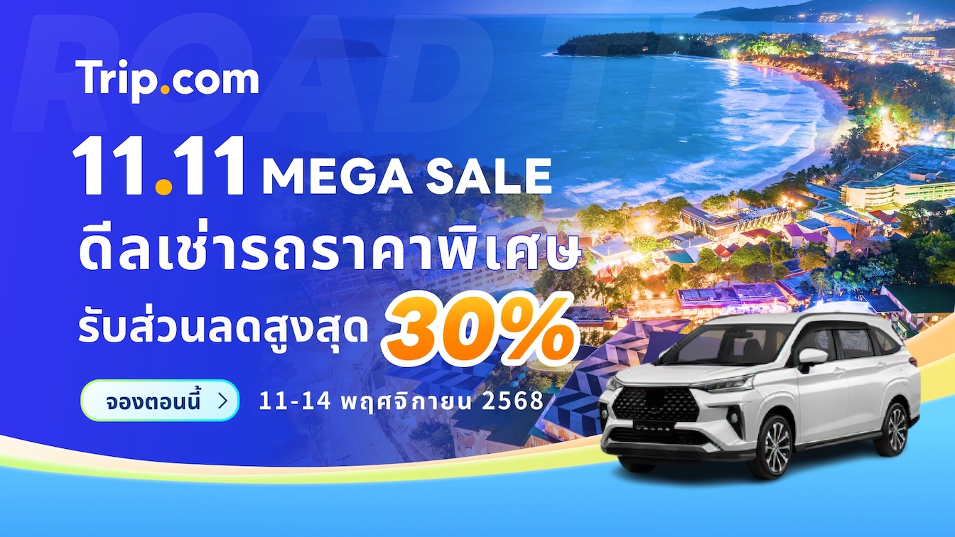 โปรโมชั่น 11.11 Mega Sale มอบโซลูชั่นการเดินทางที่ครบครัน และคุ้มค่ามากขึ้นผ่านดีลเช่ารถราคาพิเศษสำหรับการเช่ารถในจุดหมายปลายทางยอดนิยมทั่วโลก ซึ่งไฮไลท์คือโค้ดส่วนลดในการเช่ารถ 50%* ที่ใช้ได้ในหลายภูมิภาค จุดหมายสำคัญในเอเชีย รวมถึง เกาหลีใต้ ฮ่องกง ไทย ญี่ปุ่น ไต้หวัน สิงคโปร์ และมาเลเซีย เปิดให้ใช้โค้ดส่วนลดทุกวันตลอด 11-14 พฤศจิกายน 2568 นอกจากนี้ยังมีดีลเช่ารถลดราคาพิเศษ มอบส่วนลดสูงสุด 30%* ในจุดหมายการเดินทางยอดนิยมต่างๆ เพื่อให้ครอบคลุมความต้องการการเดินทางที่หลากหลาย ผู้ที่สนใจสามารถจองบริการเช่ารถได้ที่ https://th.trip.com/carhire/