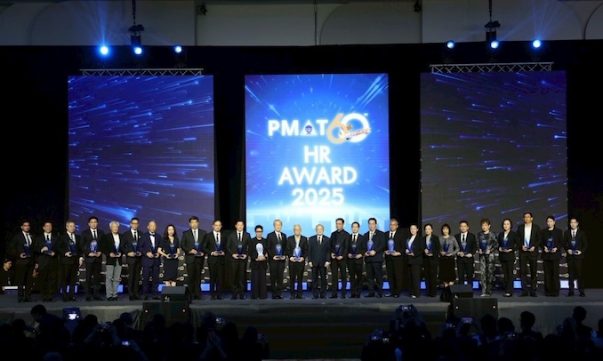 นายอนุรักษ์ วงศ์วัฒนะ และ นางญดาภรณ์ ศรีพัฒน์ รองผู้อำนวยการธนาคารออมสิน พร้อมด้วยผู้บริหารและพนักงาน ร่วมแสดงความยินดีแก่ นายวิทัย รัตนากร ผู้ว่าการธนาคารแห่งประเทศไทย ในโอกาสได้รับรางวัล PMAT HR Award 2025 กลุ่มรางวัลนักทรัพยากรมนุษย์ภาครัฐดีเด่น (Public Sector HR Professional Award) จาก ดร.สุเมธ ตันติเวชกุล เลขาธิการมูลนิธิชัยพัฒนา ภายในงาน HR DAY 2025 – PMAT 60th Anniversary International HR Conference