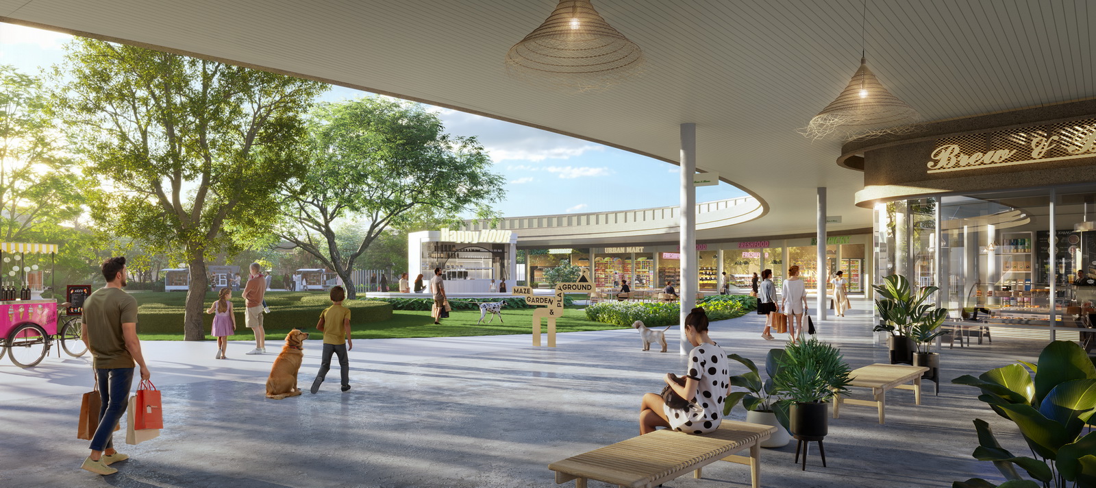 ส่วนโซนถัดเข้าไปคือ Green Space พื้นที่สีเขียวขนาดใหญ่ใจกลางโครงการ ที่ออกแบบให้เป็นสนามหญ้าโล่งกว้าง รองรับกิจกรรมกลางแจ้งและการพักผ่อนของครอบครัวได้ทุกรูปแบบ รายล้อมด้วยต้นไม้ใหญ่และสวนตกแต่งที่ให้ความร่มรื่น เชื่อมโยงกับร้านค้าโดยรอบและโซนสำหรับสัตว์เลี้ยง เป็นพื้นที่สาธารณะที่เปิดรับผู้คนทุกวัย และเป็นจุดนัดพบของชุมชนที่รักธรรมชาติได้อย่างดี