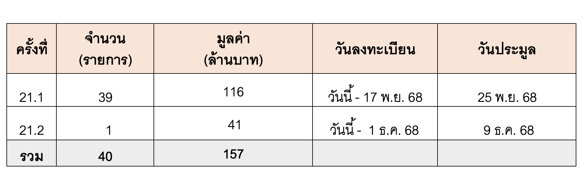 ทั้งนี้ ผู้สนใจเข้าร่วมประมูลสามารถลงทะเบียนและยื่นซองประมูล พร้อมเอกสารประกอบการประมูลที่กำหนด โดยทรัพย์เพื่อที่อยู่อาศัยและเพื่อการลงทุน ราคาไม่เกิน 20 ลบ. (ครั้งที่ 21.1/2568) ภายในวันที่ 17 พ.ย. 2568 และกำหนดเปิดซองประมูลวันที่ 25 พ.ย. 2568 ส่วนทรัพย์ที่มีราคาสูงกว่า 20 ลบ. (ครั้งที่ 21.2/2568) ภายในวันที่ 1 ธ.ค. 2568 และกำหนดเปิดซองประมูลวันที่ 9 ธ.ค. 2568 เวลา 10.00 น. เป็นต้นไป ที่สำนักงานใหญ่ SAM อาคารซันทาวเวอร์ส ถ.วิภาวดีรังสิต กรุงเทพฯ หรือสอบถามรายละเอียดเพิ่มเติมได้ที่ Call Center 1443 และดูรายละเอียดทรัพย์สินได้ทางเว็บไซต์ที่ www.sam.or.th รวมทั้งช่องทางออนไลน์ที่หลากหลายและสะดวกรวดเร็ว โดยแอด ID Line @Samline ติดตาม Facebook /YouTube / TikTok ได้ที่ "SAM บริหารสินทรัพย์สุขุมวิท" เพื่อติดตามข้อมูลข่าวสารดี ๆ จาก SAM
