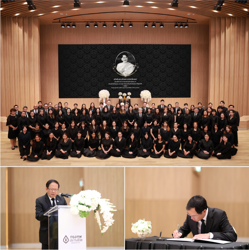 ในโอกาสนี้ บริษัท กรุงเทพประกันชีวิต จำกัด (มหาชน) ขอร่วมใจน้อมถวายความอาลัยต่อการสวรรคตของสมเด็จพระนางเจ้าสิริกิติ์ พระบรมราชินีนาถ พระบรมราชชนนีพันปีหลวง พร้อมน้อมรำลึกถึงพระมหากรุณาธิคุณอันล้นพ้นและหาที่สุดมิได้ ที่ทรงปฏิบัติพระราชกรณียกิจนานัปการ ด้วยพระวิริยอุตสาหะ และเพื่อประโยชน์สุขของพสกนิกรชาวไทยและความเจริญมั่นคงของประเทศชาติสืบไป