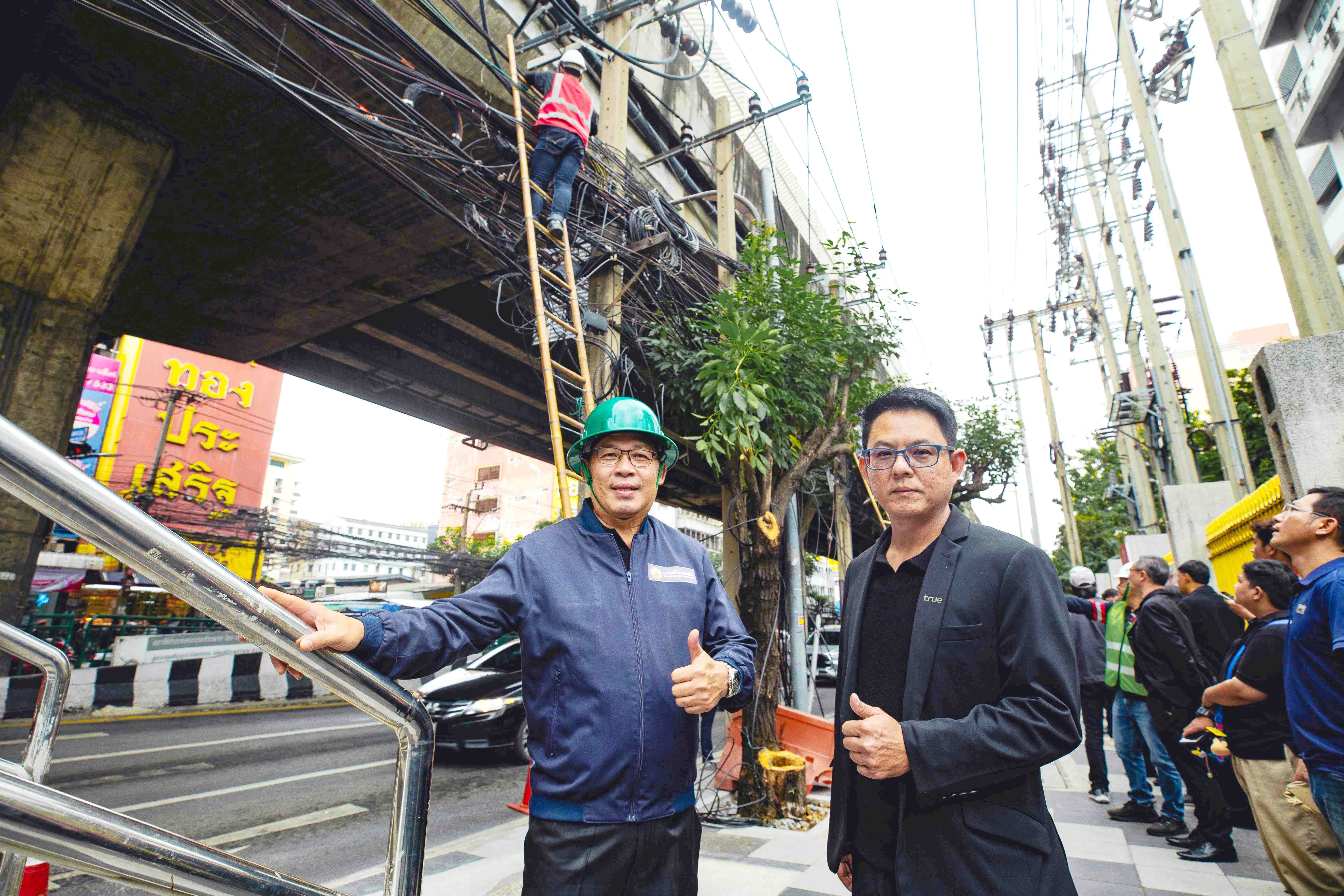 ทรู คอร์ปอเรชั่น โดย กนกศักดิ์ นิ่มนวลรัตน์ (ขวา) หัวหน้าฝ่ายรัฐกิจและสาธารณูปโภค นำทีมวิศวกรลงพื้นที่ ร่วมกับการไฟฟ้านครหลวง (MEA) นำโดย ราเชนทร์ อันเวช (ซ้าย) ผู้ช่วยผู้ว่าการบริการระบบจำหน่าย พร้อมภาคีเครือข่ายพันธมิตรที่เกี่ยวข้อง รื้อถอนและจัดระเบียบสายสื่อสาร พร้อมนำลงใต้ดินบนถนนรามคำแหง ช่วงแยกคลองตัน–แยกลำสาลี (ระยะทาง 5.80 กม.) โดยในเฟสแรกเร่งดำเนินการในช่วงซอยรามคำแหง 24 - 26 ซึ่งเป็นเส้นทางสำคัญสู่ราชมังคลากีฬาสถาน หนึ่งในสนามแข่งขันซีเกมส์ ครั้งที่ 33 (9–20 ธันวาคม 2568) เพื่อยกระดับความปลอดภัยการสัญจรและทัศนียภาพเมืองให้เรียบร้อยสวยงาม สมศักดิ์ศรีเจ้าภาพระดับภูมิภาค