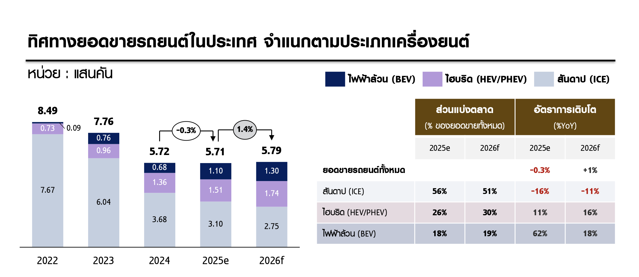 | BEV | โต 18% YoY มาจาก EV ecosystem ที่พร้อมขึ้น และผู้บริโภคเริ่มเชื่อมั่น BEV ที่ผลิตในไทย |