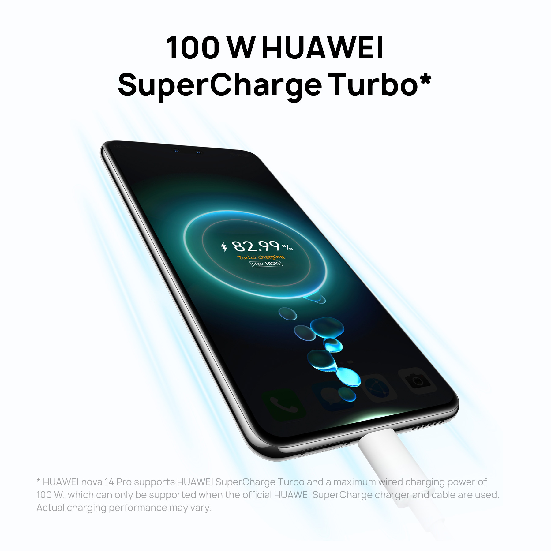 ใช้งานต่อเนื่องยาวนานกว่าด้วยพลังชาร์จเร็ว 100W HUAWEI SuperCharge Turbo
