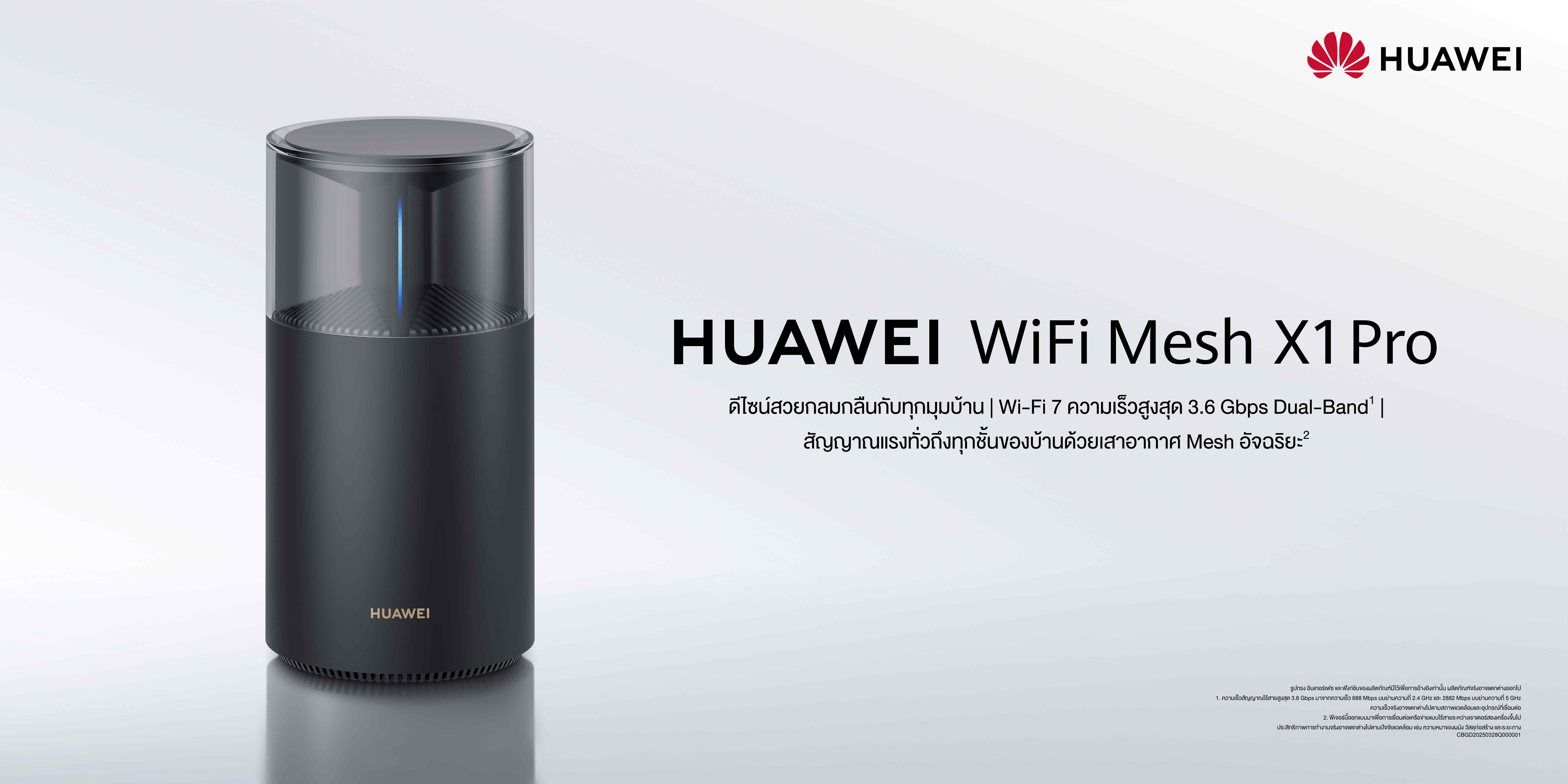 เร็วๆ นี้ เตรียมพบกับสองเราเตอร์ใหม่จากหัวเว่ย HUAWEI WiFi Mesh X1 Pro ซึ่งได้ชื่อว่า “สวยพอให้โชว์ แรงพอให้วางใจ” ทั้งการันตีด้านการออกแบบด้วยรางวัล Red Dot Design Award ดีไซน์เรียบหรู ซ่อนเสาอากาศในตัว ตกแต่งด้วยไฟ Ice Blue Breathing Light แสดงออกถึงเทคโนโลยีที่สวยงามมีระดับ รองรับ Wi-Fi 7 เน็ตแรงเต็มสปีดด้วยความเร็วสูงสุด 3.6 Gbps พร้อมระบบ Mesh+ และ Cross-floor Antenna กระจายสัญญาณสัญญาณแรงทั่วบ้าน ไม่หลุดระหว่างชั้น เชื่อมต่อเสถียร รองรับอุปกรณ์สูงสุด 128 เครื่อง ติดตั้งง่ายผ่าน HUAWEI AI Life App พร้อมระบบควบคุมสำหรับผู้ใช้