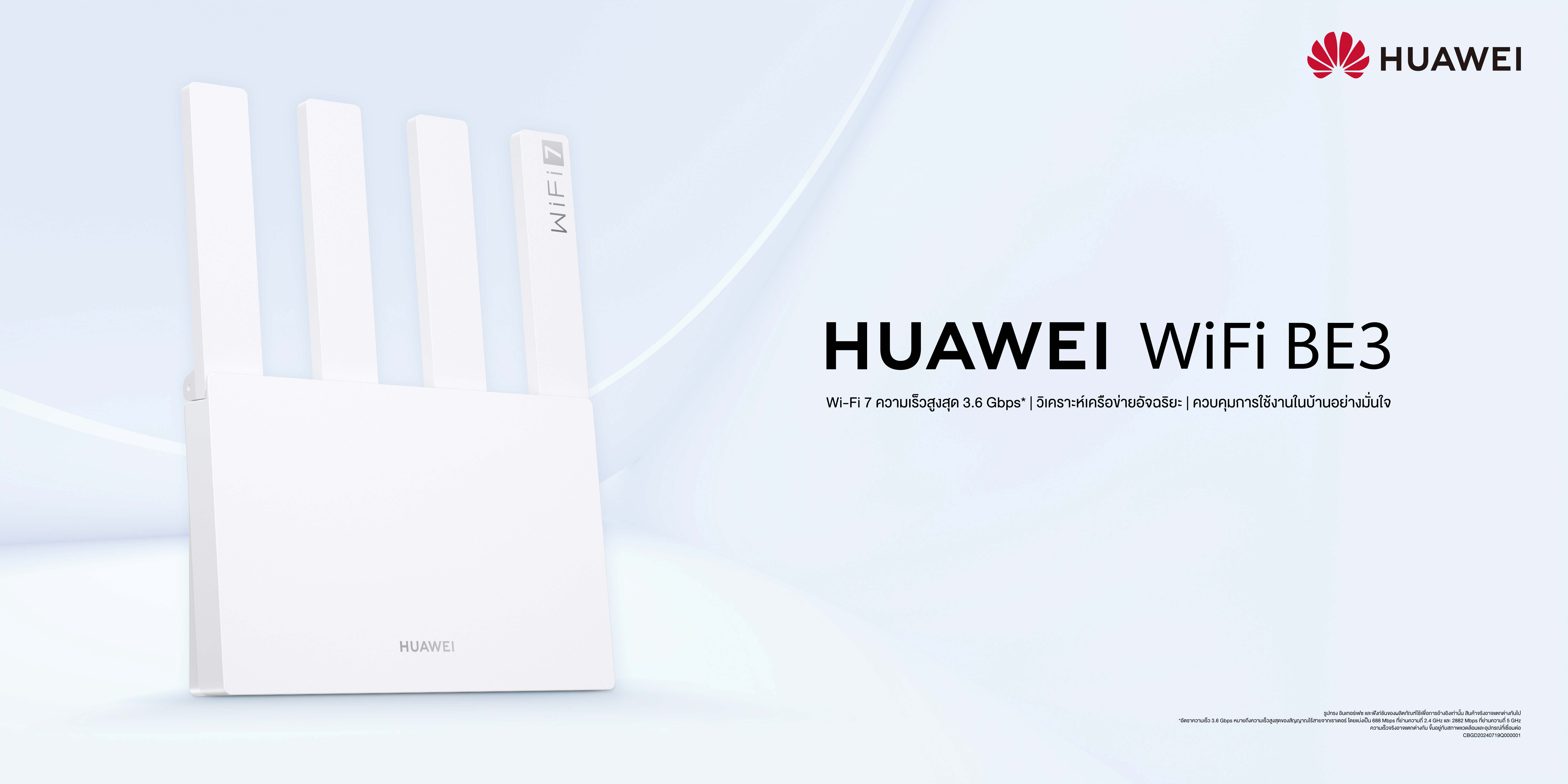 พร้อมทั้ง HUAWEI WiFi BE3 ที่ได้ชื่อว่า “เร็วปลอดภัย มั่นใจทุกสัญญาณ” รองรับ Wi-Fi 7 BE3600 และความเร็วสูงสุดที่ 3.6 Gbps เช่นกัน มาพร้อมเทคโนโลยี Multi-Link Operation (MLO) ผสานความแรงสองคลื่นความถี่ (5 GHz และ 2.4 GHz) และเทคโนโลยี 4K Quadrature Amplitude Modulation (QAM) ส่งผ่านข้อมูลได้ในปริมาณมากขึ้นถึง 20% เสริมพลังด้วย Signal Power Amplifiers และ Dedicated Network Processor สัญญาณแรงทุกมุมบ้าน มั่นใจทุกการเชื่อมต่อ ตั้งค่าง่ายผ่านโหมด Easy Setting และควบคุมอัจฉริยะผ่าน HUAWEI AI Life App ทั้งสองรุ่นรับรองความเร็วแรงถึงใจและยังการันตีมาตรฐานความปลอดภัยด้วยระบบ HUAWEI HomeSec® ปกป้องเครือข่ายตลอด 24 ชั่วโมง