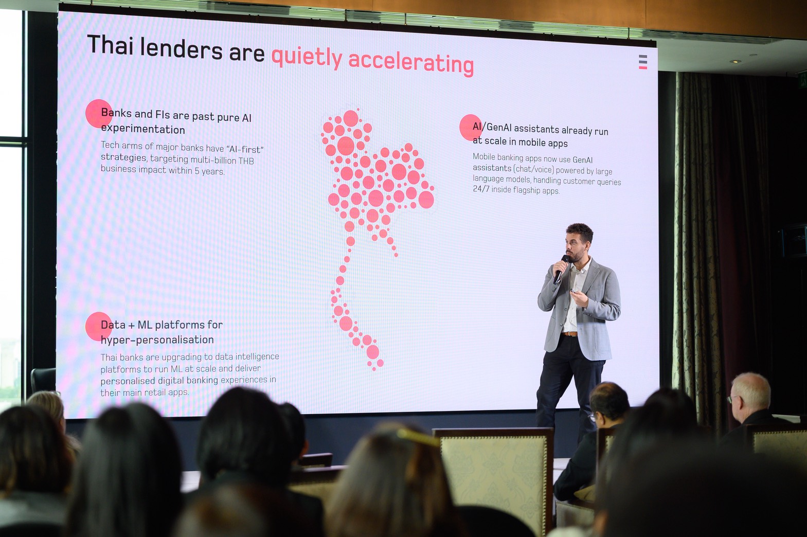 Dimitris ระบุว่า สถาบันการเงินไทยหลายแห่งได้เริ่มเดินหน้า AI-first Roadmap แล้ว ทั้งการนำ GenAI มาใช้ตอบคำถามลูกค้า การพัฒนาแพลตฟอร์มข้อมูลและโมเดล Machine Learning รวมถึงการออกแบบระบบตัดสินใจแบบเรียลไทม์เพื่อให้สอดคล้องกับพฤติกรรมลูกค้าที่เปลี่ยนไป