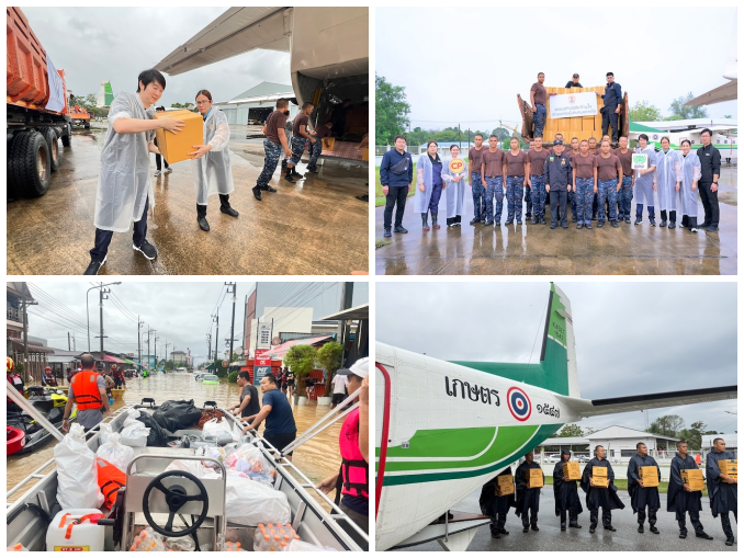 กองเรือและหน่วยเคลื่อนที่เร็วของซีพีเอฟนำเรือท้องแบน 3 ลำ พร้อมทีมเจ็ตสกีภูเก็ตจากเครือซีพีลุยพื้นที่หาดใหญ่ทันที สมทบกำลังกับทหาร ตำรวจ และทีมกู้ภัยทางน้ำ เพื่ออพยพประชาชนที่ติดค้างในบ้าน และกระจายอาหาร–น้ำดื่มให้ถึงมือผู้ประสบภัยอย่างเร็วที่สุด