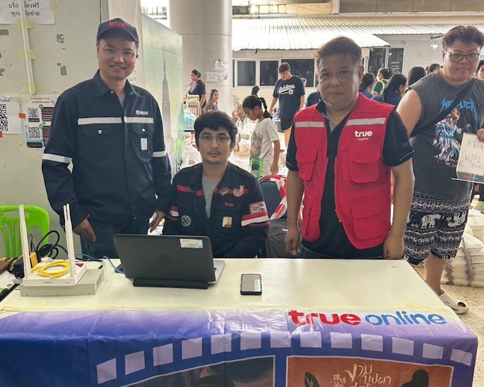 พร้อมกันนี้ ทรูยังเปิดพื้นที่บริเวณสถานีฐานโทรศัพท์เคลื่อนที่ ซึ่งเป็นพื้นที่สูง ให้เป็นที่พึ่งชั่วคราวแก่คนในชุมชน เพื่อให้มาชาร์จแบตและใช้สัญญาณสื่อสารได้อย่างต่อเนื่องระหว่างการอพยพ