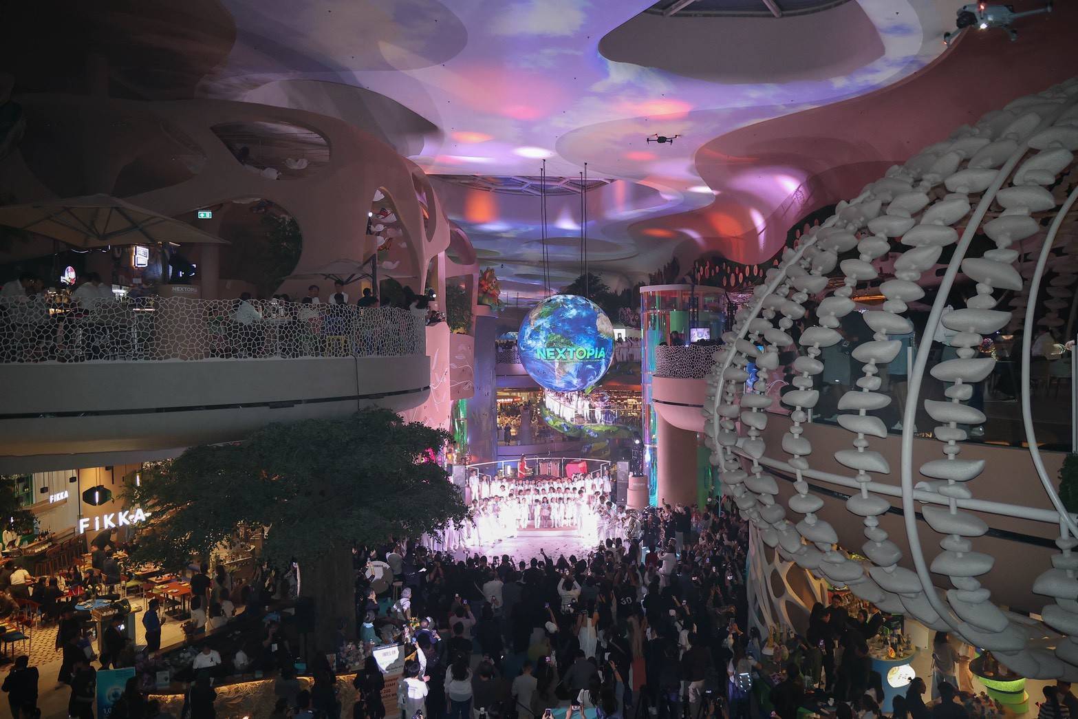 ในค่ำคืนงานแกรนด์โอเพ่นนิ่งเปิด NEXTOPIA อย่างอลังการใจกลางเมือง โชว์เปิดตัวถ่ายทอดโลกอนาคตผ่านงานกราฟิกสุดล้ำ แสงสี เสียง และสื่อผสมผสานบน The Globe ที่จำลองปรากฏการณ์ธรรมชาติ สื่อสารถึงความสำคัญของการอยู่ร่วมกับธรรมชาติอย่างสมดุลและยั่งยืน บรรยากาศงดงามยิ่งขึ้นด้วยบทเพลง “What a Wonderful World” จากเสียงใสของตัวแทนเจเนอเรชันอนาคต ถ่ายทอดความหมายแห่งการร่วมกันสร้างโลกที่ดียิ่งขึ้น พร้อมโชว์พิเศษ Vivi Recycle Concerto โดย VIVI Vassileva ศิลปินระดับโลกที่สร้างสรรค์ดนตรีด้วยอุปกรณ์จากของเหลือใช้และขยะรีไซเคิล ตอกย้ำแนวคิดการมองเห็นคุณค่าใหม่ให้สิ่งรอบตัว นับเป็นอีกหนึ่งช่วงเวลาสำคัญที่สยามพารากอนและ NEXTOPIA มอบประสบการณ์เหนือความคาดหมาย พร้อมประกาศวิสัยทัศน์สู่โลกอนาคตอย่างงดงามและทรงพลัง