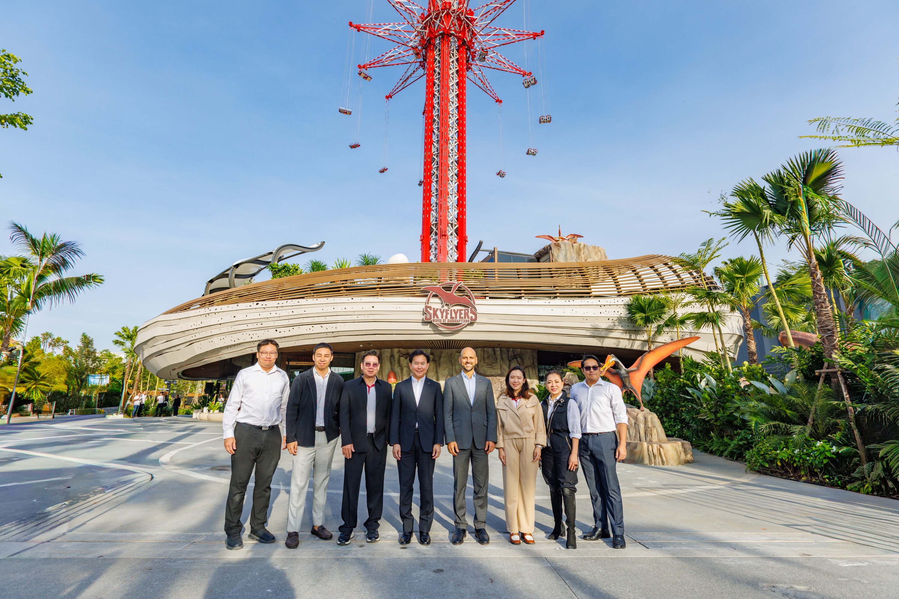 Skyflyers เป็นประสบการณ์ท่องเที่ยวแนว Edutainment แห่งแรกของไทยที่ผสานความรู้บรรพชีวินวิทยาเข้ากับความบันเทิง ถ่ายทอดแรงบันดาลใจจาก “การูแดปเทอรัส” – เทอโรซอร์สกุลพันธุ์ใหม่ของโลกที่นักวิจัยไทยค้นพบอย่างเป็นทางการเมื่อต้นปี สัญลักษณ์ “ปีกของครุฑ” จึงถูกตีความด้วยมิติศิลปะ–วัฒนธรรมไทย สื่อถึงความงดงามและการต้อนรับผู้มาเยือนเหนือท้องฟ้าแห่งกรุงเทพฯ