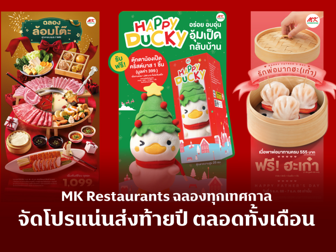 MK Restaurants พร้อมร่วมเป็นส่วนหนึ่งของประสบการณ์การรับประทานอาหารที่อบอุ่นและมีความหมายให้กับลูกค้าทุกคน และเชิญชวนทุกครอบครัวมาร่วมสร้างช่วงเวลาและความทรงจำสุดประทับใจในช่วงสิ้นปีนี้ไปด้วยกันที่ MK Restaurants ทุกสาขา