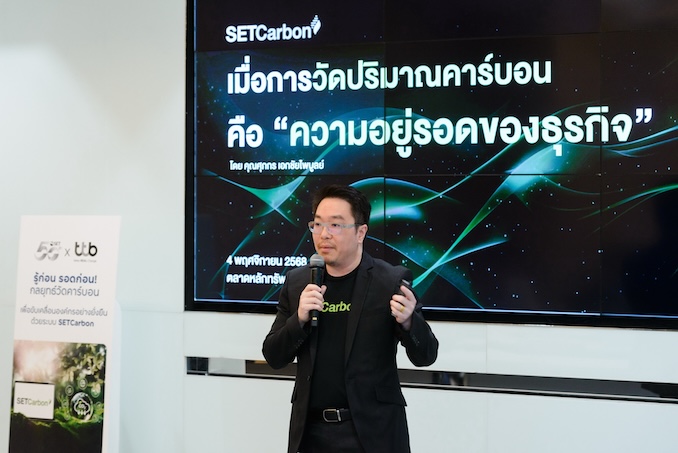 ในฐานะพันธมิตรที่มุ่งสนับสนุนลูกค้าธุรกิจให้เติบโตอย่างยั่งยืน ทีเอ็มบีธนชาต หรือ ทีทีบี เดินหน้าต่อยอดความร่วมมือกับตลาดหลักทรัพย์แห่งประเทศไทย เพื่อขยายระบบนิเวศการเงินเพื่อความยั่งยืน (Sustainable Finance) มุ่งสนับสนุนธุรกิจไทยให้เข้าถึงแหล่งเงินทุนสีเขียว ด้วยการใช้ข้อมูล ESG พิจารณาสินเชื่อ จัดงานสัมมนา Workshop “รู้ก่อน รอดก่อน! กลยุทธ์วัดคาร์บอน เพื่อขับเคลื่อนองค์กรอย่างยั่งยืน ด้วยระบบ SETCarbon” ให้กับลูกค้าธุรกิจของธนาคาร ได้เรียนรู้การใช้งานระบบ SETCarbon ซึ่งเป็นเครื่องมือสำคัญในการจัดการ คำนวณ และรายงานข้อมูลการปล่อยก๊าซเรือนกระจกอย่างมีประสิทธิภาพ ซึ่ง SETCarbon จะทำหน้าที่เป็น “พาสปอร์ต” ให้ธุรกิจทุกขนาดสามารถเข้าถึงสินเชื่อที่ได้รับสิทธิประโยชน์มากกว่าสินเชื่อทั่วไป และจะเป็นส่วนหนึ่งที่ช่วยผลักดันให้ภาคธุรกิจบรรลุเป้าหมายด้านความยั่งยืน และเติบโตไปพร้อมกับการสร้างเศรษฐกิจคาร์บอนต่ำ