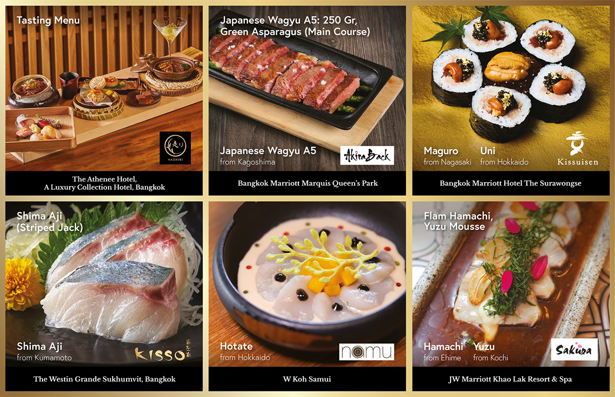 เจโทร กรุงเทพฯ ขอเชิญทุกท่านร่วมสัมผัสประสบการณ์เมนูอาหารสุดพิเศษที่รังสรรค์จากวัตถุดิบคุณภาพสูงนำเข้าจากประเทศญี่ปุ่นได้ที่ร้านอาหารที่ร่วมโครงการ ตั้งแต่วันนี้ถึงวันที่ 18 มกราคม 2569 โดยสามารถดูรายละเอียดโรงแรม/ห้องอาหารที่เข้าร่วม และเมนูพิเศษได้ที่เว็บไซต์แคมเปญ https://japan-food.jetro.go.jp/events/thailand2025/index.html
