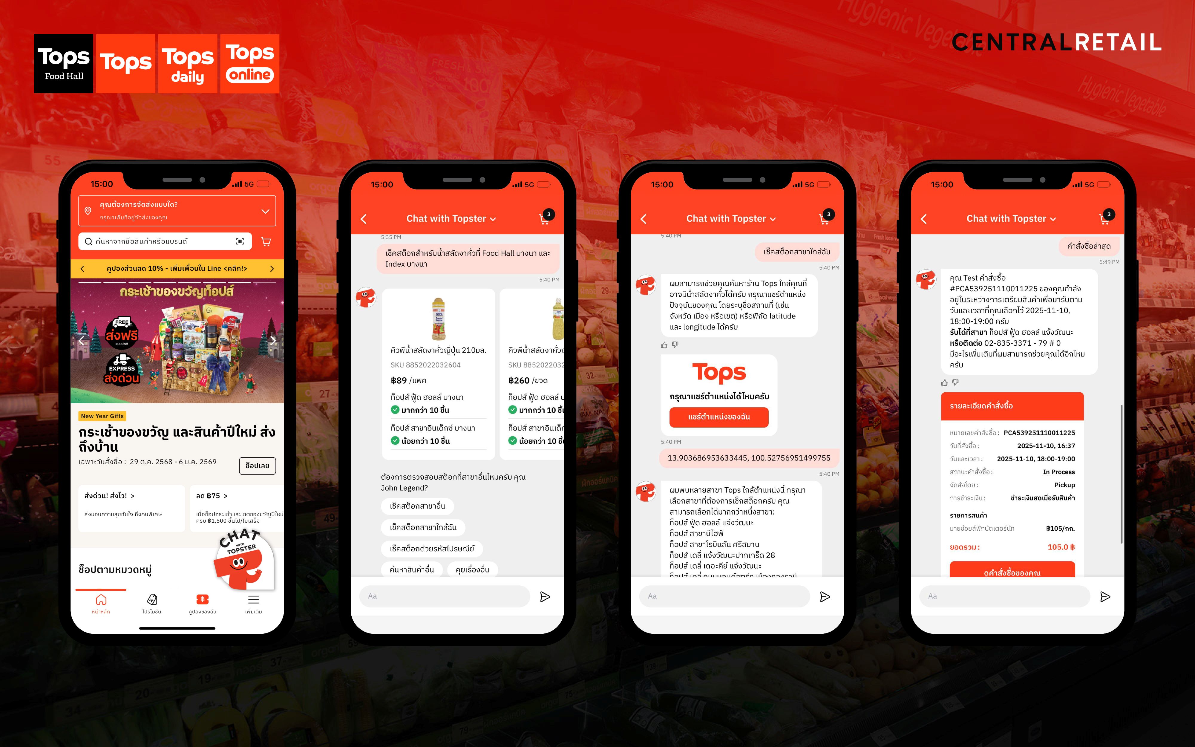 “ความร่วมมือครั้งนี้เป็นการต่อยอดจากความสำเร็จจาก TOPS Chef Bot ภายใต้เทคโนโลยี Generative AI ผ่านความร่วมมือกับ Google Cloud เพื่อร่วมกันพัฒนา AI Chatbot ในครั้งนี้ โดยมุ่งเน้นและให้ความสำคัญด้านประโยชน์การใช้งานและประสิทธิภาพเป็นหลัก ระบบสนทนาอัจฉริยะรุ่นใหม่นี้สามารถส่งมอบข้อมูลที่นำไปใช้ได้จริงในแบบเรียลไทม์ ไม่ว่าจะเป็นการติดตามคำสั่งซื้อ การตรวจสอบสต็อกสินค้า รวมถึงข้อมูลการค้นหาสาขา ซึ่งช่วยให้ลูกค้าวางแผนการช้อปได้สะดวกแม่นยำยิ่งขึ้น พร้อมกันนี้ยังช่วยเพิ่มประสิทธิภาพการดำเนินงานภายในสาขาได้ดียิ่งขึ้น”