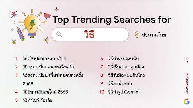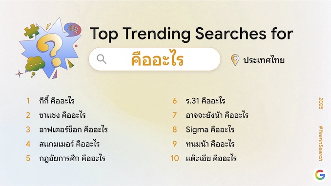 เผยผลคำค้นหายอดนิยมประจำปี 2568 สิ่งที่คนไทยให้ความสนใจมีดังนี้