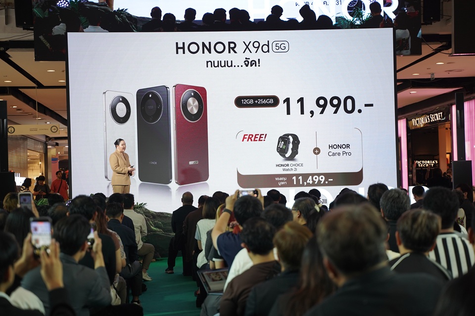 บริษัท ซินเน็ค (ประเทศไทย) จำกัด (มหาชน) หรือ SYNNEX ผู้นำด้านการจัดจำหน่ายสินค้าไอทีและเทคโนโลยีครบวงจร นำโดย ปัญญา พูนเพิ่มผลสิริ ประธานเจ้าหน้าที่ฝ่ายขายและการตลาด พร้อมด้วย สุทธิพงศ์ จันทร์ภักดี ผู้อำนวยการฝ่าย IT ได้ร่วมงานเปิดตัว HONOR X9d5G ภายใต้สโลแกน “ทนนน...จัด!” โดยสมาร์ตโฟนรุ่นนี้สร้างมาตรฐานใหม่ให้เป็นสมาร์ตโฟนระดับกลางที่ทรงพลังที่สุดในตลาด โดดเด่นด้วยโครงสร้างสุดแข็งแกร่ง รองรับการตกกระแทกสูงสุด 2.5 เมตร พร้อมผ่านมาตรฐานกันน้ำ กันฝุ่นระดับสูงสุดครอบคลุมทั้ง IP69K, IP69, IP68 และ IP66 ผสานสมรรถนะด้านการใช้งานเหนือชั้นด้วยแบตเตอรี่ขนาด 8,300mAh ซึ่งเป็นความจุที่ใหญ่ที่สุดในตลาดสมาร์ตโฟนปัจจุบัน มาพร้อมกล้อง AI Camera อัจฉริยะ ความละเอียด 108MP เสริมด้วยระบบกันสั่นคู่ OIS + EIS ช่วยให้ผู้ใช้เก็บภาพได้คมชัดทุกสภาพแสง ด้วยการออกแบบที่ตอบโจทย์ทุกความต้องการของผู้ใช้รุ่นใหม่ ทั้งความทนทาน ประสิทธิภาพ เปิดตัวพร้อม 3 เฉดสีพรีเมียม ได้แก่ Reddish Brown, Sunrise Gold และ Midnight Black ในราคาเพียง 11,990 บาท พร้อมข้อเสนอมากมาย เริ่มวางจำหน่ายตั้งแต่วันที่ 4 ธันวาคม 2568 เป็นต้นไป