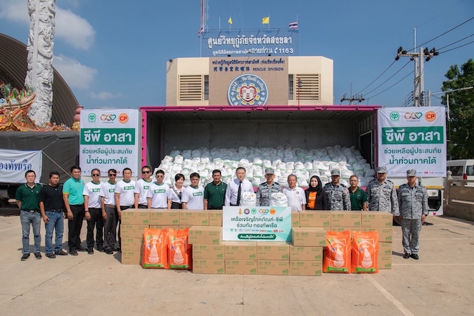 ทั้งนี้ ตลอดช่วงน้ำท่วมภาคใต้ที่ผ่านมาจนถึงปัจจุบัน เครือเจริญโภคภัณฑ์ (ซีพี) และกลุ่มธุรกิจในเครือได้ระดมพลัง “ซีพีอาสา ร้อยเรียงความดี ช่วยเหลือผู้ประสบภัยน้ำท่วมภาคใต้” เข้าช่วยเหลือผู้ประสบภัยน้ำท่วมภาคใต้รวมกว่า 127 จุด ครอบคลุม 8 จังหวัด 21 อำเภอ ผ่านการสนับสนุนถุงกำลังใจ 6,350 ชุด วัตถุดิบของสด 28,618 กิโลกรัม ไข่ไก่สด 300,000 ฟอง ไข่สมุนไพรซีพี 130,000 ฟอง อาหารอุ่นพร้อมทาน 22,100 กล่อง เบเกอรี่ 19,000 ชิ้น น้ำดื่ม 76,800 ขวด หน้ากากอนามัย 130,000 ชิ้น ซิมทรู 500 ซิม ข้าวสารตราฉัตร 12,240 กิโลกรัม ข้าวไข่เจียว 8,950 จาน พร้อมส่งรถ –เรือ–อุปกรณ์กู้ภัยและซิมสื่อสารกว่า 500 ซิมลงพื้นที่ รวมถึงการเปิดโรงครัว 9 จุดและสนับสนุนโรงครัวภาคีเครือข่ายอื่นๆ ทั้งภาครัฐและเอกชนในหลายพื้นที่ ซึ่งทั้งหมดเป็นความร่วมมือจากทุกบริษัทในเครือเพื่อร่วมบรรเทาความเดือดร้อนและฟื้นฟูชุมชนภาคใต้อย่างเร่งด่วนและต่อเนื่อง