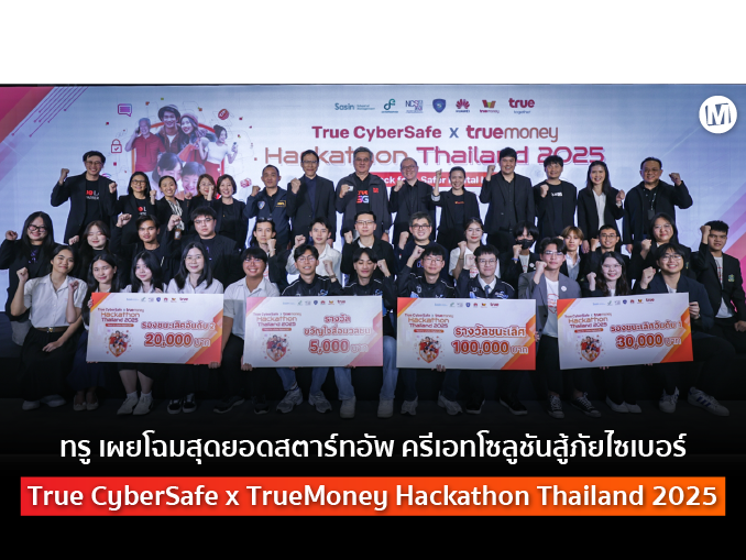 บ่มเพาะนวัตกรไทยสร้างสังคมดิจิทัลที่ปลอดภัยและยั่งยืน...ทรู คอร์ปอเรชั่น เทคคอมปานีไทย ร่วมกับ บริษัท ทรูมันนี่ จำกัด ประกาศผลผู้ชนะระดับประชาชนทั่วไปและสตาร์ทอัพจากเวที Final Pitching Day ของโครงการ “True CyberSafe x TrueMoney Hackathon Thailand 2025” พัฒนาโซลูชันรับมือภัยไซเบอร์ที่นำไปใช้ได้จริง พร้อมต่อยอดสู่การผลักดันสตาร์ทอัพไทยให้ก้าวเข้าสู่ตลาด Crime Tech ที่กำลังเติบโตสูง โดยได้รับความร่วมมือจากกองบัญชาการตำรวจสืบสวนสอบสวนอาชญากรรมทางเทคโนโลยี (บช.สอท.) กระทรวงดิจิทัลเพื่อเศรษฐกิจและสังคม สำนักงานคณะกรรมการการรักษาความมั่นคงปลอดภัยไซเบอร์แห่งชาติ (สกมช.) บริษัท หัวเว่ย เทคโนโลยี่ (ประเทศไทย) จำกัด และสถาบันบัณฑิตบริหารธุรกิจศศินทร์แห่งจุฬาลงกรณ์มหาวิทยาลัย ร่วมเปิดประสบการณ์และชื่นชมผลงานนวัตกรรมจากพลังความคิดสร้างสรรค์นวัตกรไทยได้ที่เฟซบุ๊ก True Lab