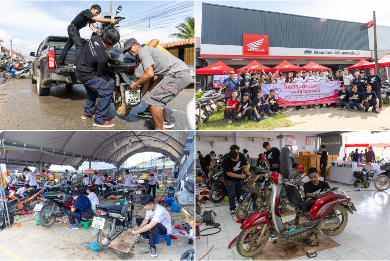 ไทยฮอนด้า ร่วมกับร้านผู้จำหน่ายรถจักรยานยนต์ฮอนด้าทั่วประเทศ เดินหน้าเช่วยเหลือผู้ประสบภัยภาคใต้ภายใต้โครงการ “ไทยฮอนด้า ร่วมใจสู้ภัยน้ำท่วมภาคใต้” โดยส่งทีมช่างมืออาชีพ และอาสาสมัครช่างศูนย์บริการฮอนด้าจากทั่วประเทศกว่า 200 คน พร้อมอุปกรณ์ช่างครบชุด บินตรงลงพื้นที่หาดใหญ่เพื่อให้บริการตรวจเช็กและซ่อมรถที่ได้รับผลกระทบจากน้ำท่วมอย่างเร่งด่วน หลังมีประชาชนนำรถเข้ารับบริการมากกว่า 1,000 คัน ภายในวันแรก