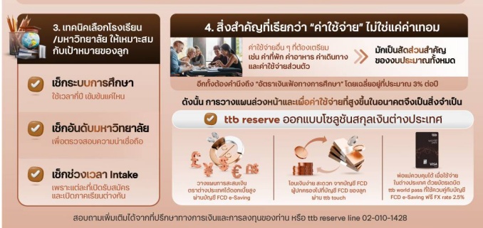 ttb reserve ชี้ว่าปัจจัยสำคัญไม่ได้มีเพียงค่าเทอม แต่รวมถึงค่าครองชีพและอัตราเงินเฟ้อทางการศึกษา ทำให้ผู้ปกครองจำเป็นต้องเตรียมแผนการเงินล่วงหน้าเพื่อลดความเสี่ยงค่าใช้จ่ายบานปลาย