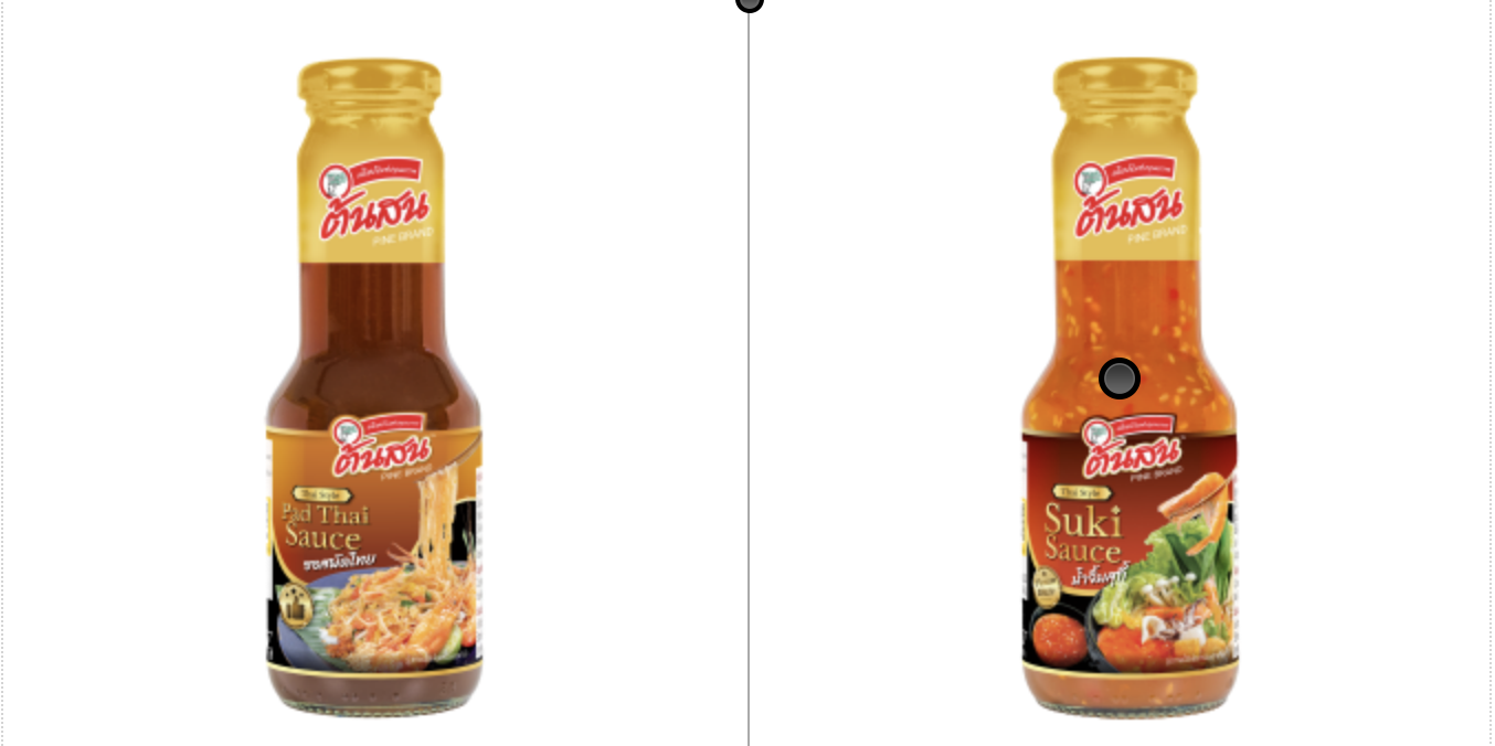 คุณพรรณา กล่าวเพิ่มเติมว่า จุดขายของทั้ง 2 ผลิตภัณฑ์คือ การออกแบบบรรจุภัณฑ์ที่คำนึงถึงความสวยงามสะดวกใช้ และสะอาด ปลอดภัย ด้วยรูปลักษณ์ที่ดูพรีเมียม ทันสมัย สร้างความโดดเด่นเพื่อดึงดูดคนรุ่นใหม่ โดยมีฟิล์มสีทองหุ้มฝาปิดยาวถึงคอขวดมั่นใจได้เรื่องความสะอาด ทรงขวดจับถนัดมือ ปากขวดกว้าง เทสะดวก พร้อมจุดขายเรื่องรสชาติที่โดดเด่น โดยมีการพัฒนาซอสสูตรพิเศษเฉพาะต้นสนที่มีรสชาติ อร่อยกลมกล่อม เพิ่มจุดเด่นของวัตถุดิบเข้าไปกับซอสแต่ละรสชาติ โดยน้ำจิ้มสุกี้จะมีความหอมงา ที่สามารถเห็นเนื้องาชัดเจนตั้งแต่ในขวด และซอสผัดไทย ที่มีความหอมและเปรี้ยวจากมะขามแท้ ภายใต้คอนเซ็ปต์ “อร่อยง่ายๆ มัดใจทุก Gen”