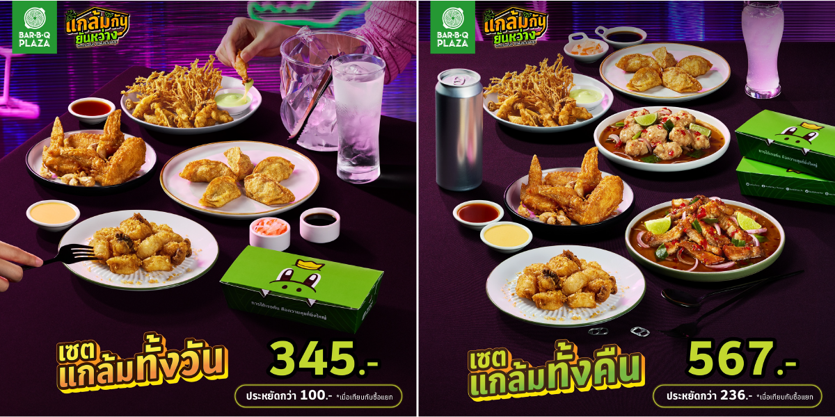 กลิ่นอายเทศกาลแห่งการสังสรรค์เริ่มต้นขึ้นแล้ว บาร์บีคิวพลาซ่า ชวนสายปาร์ตี้เตรียมตั้งตี้แบบไม่มีสะดุดกับเซต “แกล้มกันยันหว่าง” ตัวจบเรื่องตั้งตี้ จอยทั้งคืนไม่มีสะดุด (เฉพาะเดลิเวอรี่) เซตสุดคุ้มที่ให้คุณและแก๊งจอยได้ยาวขึ้น ตั้งแต่วงแรกจนถึงวงสุดท้าย เสิร์ฟครบทั้งของทอดและยำแซ่บ กับแกล้ม GON เพื่อนข้างแก้ว ผู้ช่วยยืดวงตัวจริง จัดหนักทั้งความกรอบ แซ่บ นัวถึงเครื่อง ครบถ้วนจนไม่ต้องสั่งแยกให้วุ่น แค่เลือกเซตเดียวก็พร้อมตั้งตี้ได้ยันเช้า ส่งตรงถึงบ้าน กินเพลินได้ทุกวง