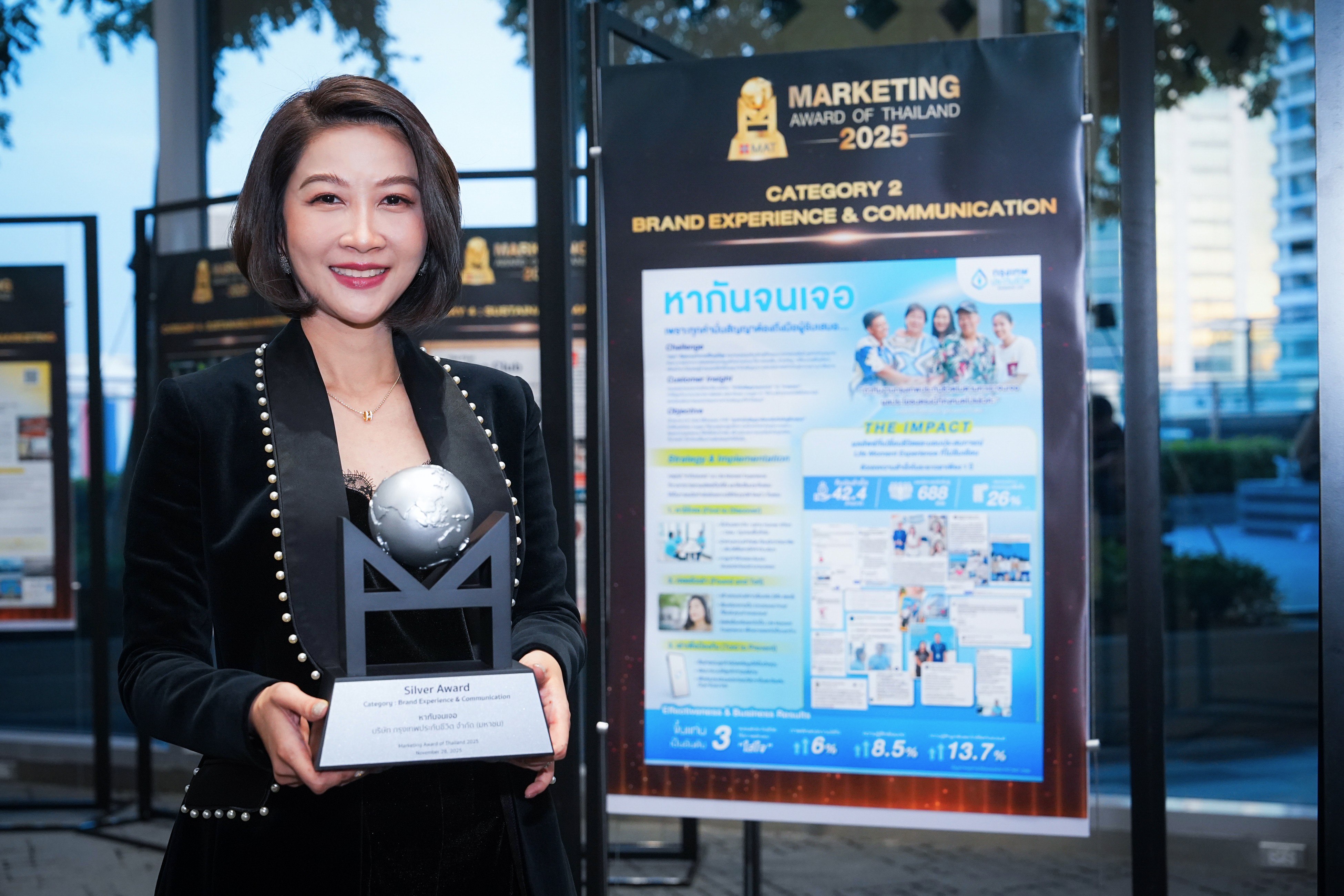 กรุงเทพประกันชีวิต คว้ารางวัลจากเวที Marketing Award of Thailand 2025 (MAT Award 2025) จัดโดยสมาคมการตลาดแห่งประเทศไทย โดดเด่นด้วยแคมเปญที่สร้างแบรนด์จาก “ความใส่ใจที่จริงใจ” จนเกิด Loyalty เน้นการถ่ายทอดจุดยืนของแบรนด์ ผ่านประสบการณ์และการสื่อสาร เพื่อสร้างความจงรักภักดี หรือ Brand Experience & Communication รางวัล Silver จากผลงาน “หากันจนเจอ”