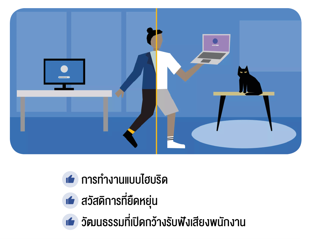 สำหรับคนกลุ่มนี้ การเปลี่ยนงานบ่อย (Job Hopping) ไม่ใช่เรื่องเสียหายหากงานเดิมไม่ตอบโจทย์ และพวกเขาคาดหวังรูปแบบการทำงานแบบไฮบริด (Hybrid) รวมถึงสวัสดิการที่ยืดหยุ่น