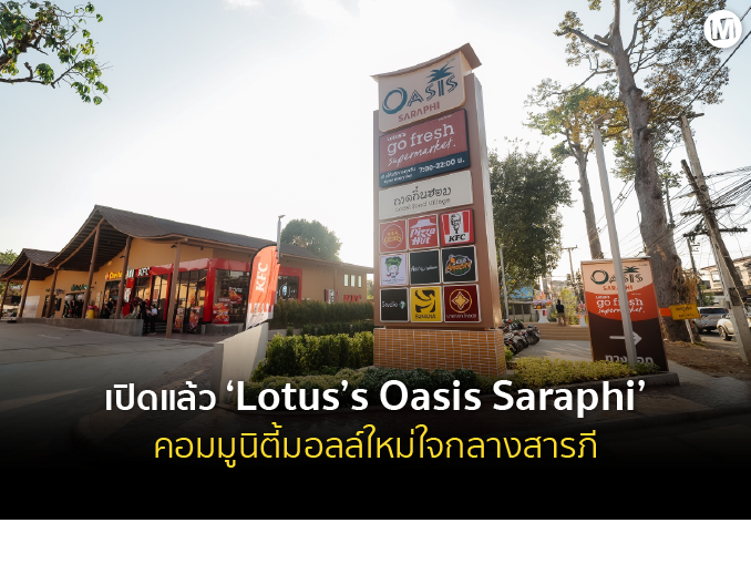โลตัส ผู้นำธุรกิจค้าปลีกภายใต้ บริษัท ซีพี แอ็กซ์ตร้า จำกัด (มหาชน) เดินหน้าพัฒนาพื้นที่เปิดประสบการณ์ใหม่ของคนในชุมชน เปิดตัว “Lotus’s Oasis Saraphi” คอมมูนิตี้ มอลล์แห่งใหม่ในอำเภอสารภี จังหวัดเชียงใหม่ ที่ผสานทั้งความสะดวกสบายและประสบการณ์ที่หลากหลาย ไม่ว่าจะเป็นการชอปปิ้ง การรับประทานอาหาร การพักผ่อน หรือการทำกิจกรรมสร้างสรรค์ร่วมกัน ครบจบในที่เดียว โดยไม่ต้องเดินทางเข้าเมืองให้วุ่นวาย พร้อมตั้งใจเป็น “ตี้ฮอมใจ๋ของทุกคนในทุกวัน” ที่เชื่อมโยงผู้คนทุกช่วงวัยให้มาใช้ชีวิตร่วมกันอย่างเรียบง่าย อบอุ่น และเปี่ยมด้วยความสุข พร้อมทั้งเปิดให้บริการ Lotus’s Go Fresh Supermarket สาขาสารภี ตอกย้ำจุดยืน “คุ้มทุกวัน สดใหม่ ใกล้บ้านคุณ” ตอบโจทย์การใช้ชีวิตประจำวันของชาวสารภีอย่างครบถ้วน