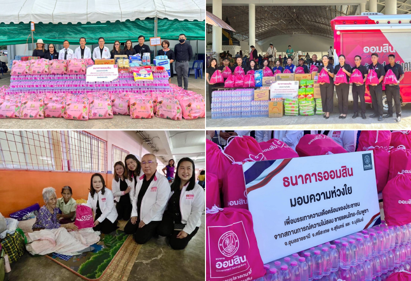 นอกจากนี้ ธนาคารยังคงสนับสนุนงบประมาณให้ความช่วยเหลือด้านมนุษยธรรมอย่างต่อเนื่องนับตั้งแต่เกิดเหตุการณ์ปะทะ ตลอดแนวชายแดนไทย-กัมพูชา โดยการสนับสนุนภารกิจของศูนย์พักพิง ได้แก่ การมอบถุงยังชีพ “ออมสินห่วงใย” รวมถึงเครื่องอุปโภคบริโภคที่จำเป็น และน้ำดื่ม แก่ผู้อพยพ และกำลังพลในพื้นที่จังหวัดสุรินทร์ ศรีสะเกษ บุรีรัมย์ อุบลราชธานี สระแก้ว และจังหวัดตราด รวมมูลค่ากว่า 7.3 ล้านบาท ธนาคารออมสินขอแสดงความห่วงใยและส่งกำลังใจไปยังทหารและตำรวจตระเวนชายแดนที่ยังคงปฏิบัติหน้าที่อย่างเข้มแข็งอยู่ในพื้นที่ ตลอดจนครอบครัวของทหารกล้าผู้เสียสละชีวิตปกป้องอธิปไตยของประเทศ และพี่น้องประชาชนที่ได้รับผลกระทบ โดยมุ่งหวังว่าสถานการณ์จะคลี่คลายและกลับสู่สภาวะปกติในเร็ววัน