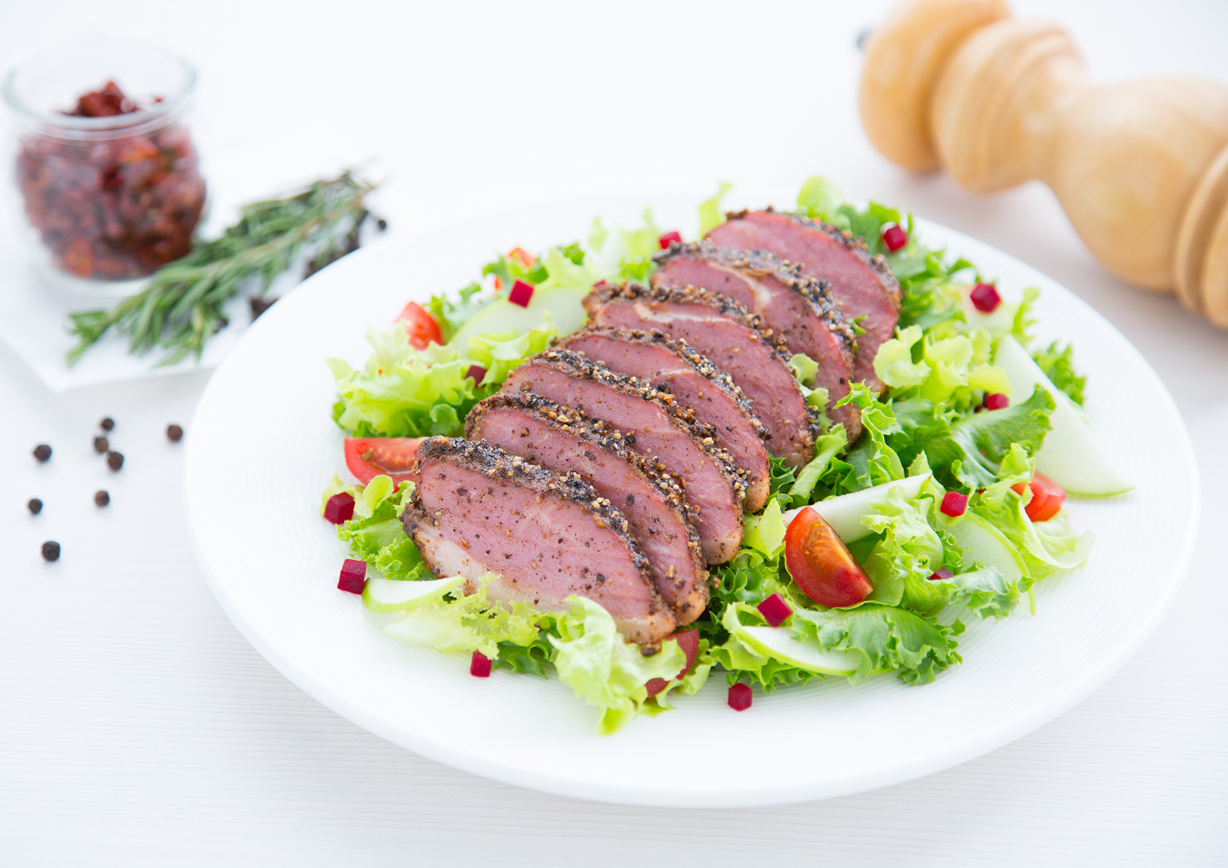 ตามมาด้วย อกเป็ดพาสตรามี่ (Pastrami Duck Breast) อกเป็ดพาสตรามี่แช่แข็ง รสชาติเข้มข้น ได้กลิ่นหอมพริกไทยดำ และเครื่องเทศ อกเป็ดหอมนุ่ม ผ่านการปรุงรสอย่างพิถีพิถัน อร่อยได้อย่างง่ายๆ สะดวก พร้อมปรุง สามารถนำไปทานเป็นเมนูอาหารจากหลัก หรือเมนูเรียกน้ำย่อยก็ลงตัว โดยสามารถ อุ่นร้อนได้หลากหลายวิธีเพื่อให้ได้รสสัมผัสตามที่ชอบ ไม่ว่าจะเป็น การนำลงไปทอดในน้ำมัน, หม้ออบลมร้อน , เตาอบ หรือ ไมโครเวฟ หั่นสไลด์เป็นชิ้น และรับประทานคู่กับอาหารได้หลากหลายเมนู อาทิ ทานคู่กับสลัดผัด หรือ ทานคู่กับขนมปังแซนด์วิช เหมาะสำหรับเป็นเมนูเรียกน้ำย่อยในงานเลี้ยงสังสรรค์ประจำปีอย่างดูมีระดับ