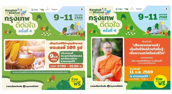 แล้วพบกันในเทศกาล “กรุงเทพดีต่อใจ” Bangkok Bestival 2026 เข้าฟรี! ไม่มีค่าใช้จ่าย ระหว่างวันที่ 9-11 มกราคม 2569 ณ สวนลุมพินี สวนเบญจกิติ อุทยานเบญจสิริ และสวนปทุมวนานุรักษ์ ติดตามรายละเอียดกิจกรรมเพิ่มเติมได้ที่เพจ FB:กรุงเทพดีต่อใจ