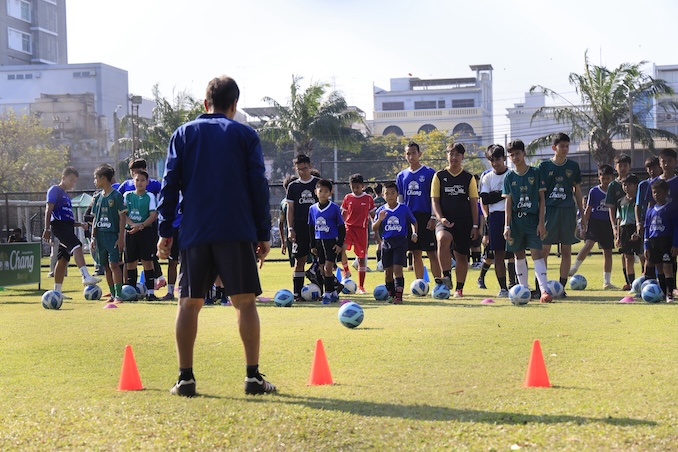 ซึ่งได้มีโอกาสไปฝึกทักษะฟุตบอลที่ประเทศอังกฤษ และได้นำองค์ความรู้รวมถึงประสบการณ์ที่ได้รับกลับมาปรับใช้เพื่อพัฒนาฟุตบอลไทย พร้อมขอขอบคุณบริษัท ไทยเบฟเวอเรจ จำกัด (มหาชน) ที่ให้ความสำคัญและสนับสนุนวงการฟุตบอลไทยมาอย่างต่อเนื่อง และในวันนี้ผมและ “จีโน่ เดอะ สแน็ค” ยังได้นำลูกฟุตบอลพร้อมลายเซ็นมามอบให้น้องๆ เพื่อนำไปใช้ฝึกซ้อมอย่างสม่ำเสมอ เพื่อก้าวไปสู่ความฝันในการเป็นนักฟุตบอลอาชีพให้ประสบความสำเร็จในอนาคต”