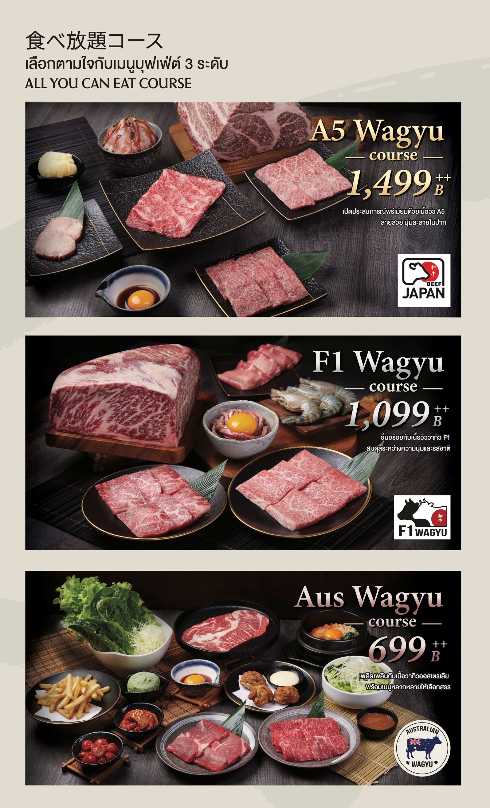 สำหรับร้าน Gyukaku สาขา KINGSQUARE ได้มีการอัปเกรดเมนูใหม่ทั้งหมด โดยแบ่งออกเป็น 3 คอร์ส เริ่มต้นที่ 699 บาท ยังคงจุดแข็งด้านความคุ้มค่า พร้อมนำเสนอเนื้อคุณภาพ อาทิ เนื้อออสเตรเลียวากิว และยกระดับเป็นเนื้อวากิวญี่ปุ่นในคอร์สราคา 1,099 บาท และ 1,499 บาท เพื่อรองรับกลุ่มลูกค้าที่มีความต้องการหลากหลาย และจะทยอยเปลี่ยนเมนูใหม่นี้กับสาขาเดิมในเร็วๆ นี้