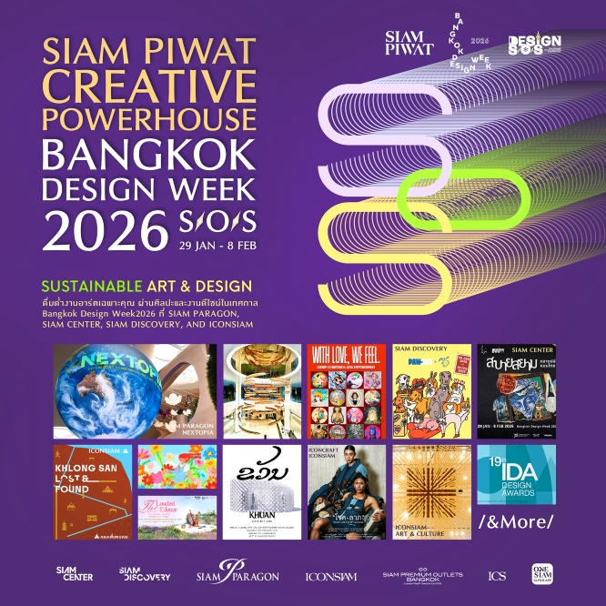 กลุ่มสยามพิวรรธน์ ผู้พัฒนาจุดหมายปลายทางระดับโลก ร่วมสนับสนุนงาน Bangkok Design Week 2026 ด้วยการเปิดพื้นที่ใจกลางเมือง ได้แก่ สยามพารากอน สยามเซ็นเตอร์ สยามดิสคัฟเวอรี่ และไอคอนสยามให้เป็นเวทีของศิลปะ การออกแบบและความยั่งยืน ภายใต้แนวคิด Sustainable Art & Design ถ่ายทอดประสบการณ์ Extraordinary Art Experiences เชื่อมโยงความคิดสร้างสรรค์และความยั่งยืนเข้ากับการใช้ชีวิตประจำวัน พร้อมขับเคลื่อนกรุงเทพฯ สะท้อนศักยภาพความแข็งแกร่งในฐานะ ขุมพลังความคิดสร้างสรรค์ (Creative Powerhouse) ของกลุ่มสยามพิวรรธน์ ผู้บุกเบิกนำศิลปะ ความคิดสร้างสรรค์ และวัฒนธรรมสู่พื้นที่ศูนย์การค้าเป็นรายแรกของประเทศไทยและเดินหน้าสร้างสรรค์อย่างต่อเนื่องเพื่อสร้างจุดหมายปลายทางศิลปะที่ดีที่สุดแห่งหนึ่งของโลก