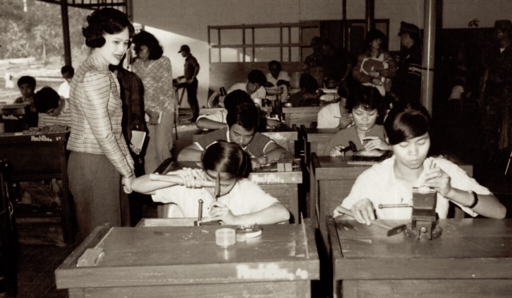 สมเด็จพระนางเจ้าฯ พระบรมราชินีนาถทรงพระปรีชาและเห็นการณ์ไกลอย่างยิ่ง ทรงวางโครงการศิลปาชีพให้เป็นระบบครบวงจร ทั้งการผลิตงานหัตถกรรมและการจำหน่าย โดยทรงโปรดให้ฝึกนักเรียนศิลปาชีพทุกแผนกให้สามารถทำงานได้ครบทุกขั้นตอน