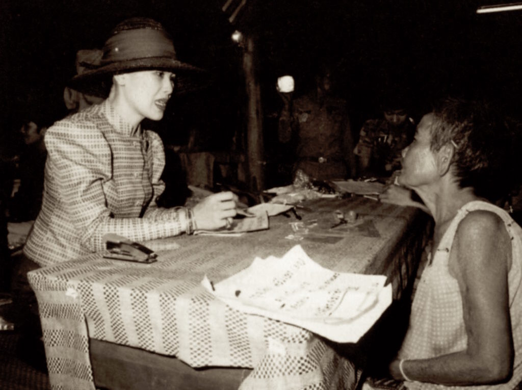 นอกจากนี้ ในฐานะสภานายิกาสภากาชาดไทย พระองค์ได้โปรดเกล้าฯ ให้จัดโครงการฝึกอบรมศิลปาชีพสำหรับผู้ลี้ภัยจากอินโดจีน ณ บ้านเขาล้าน จังหวัดตราด เพื่อให้ผู้ลี้ภัยมีอาชีพและสามารถเลี้ยงชีพตนเองในพื้นที่ตั้งถิ่นฐานใหม่