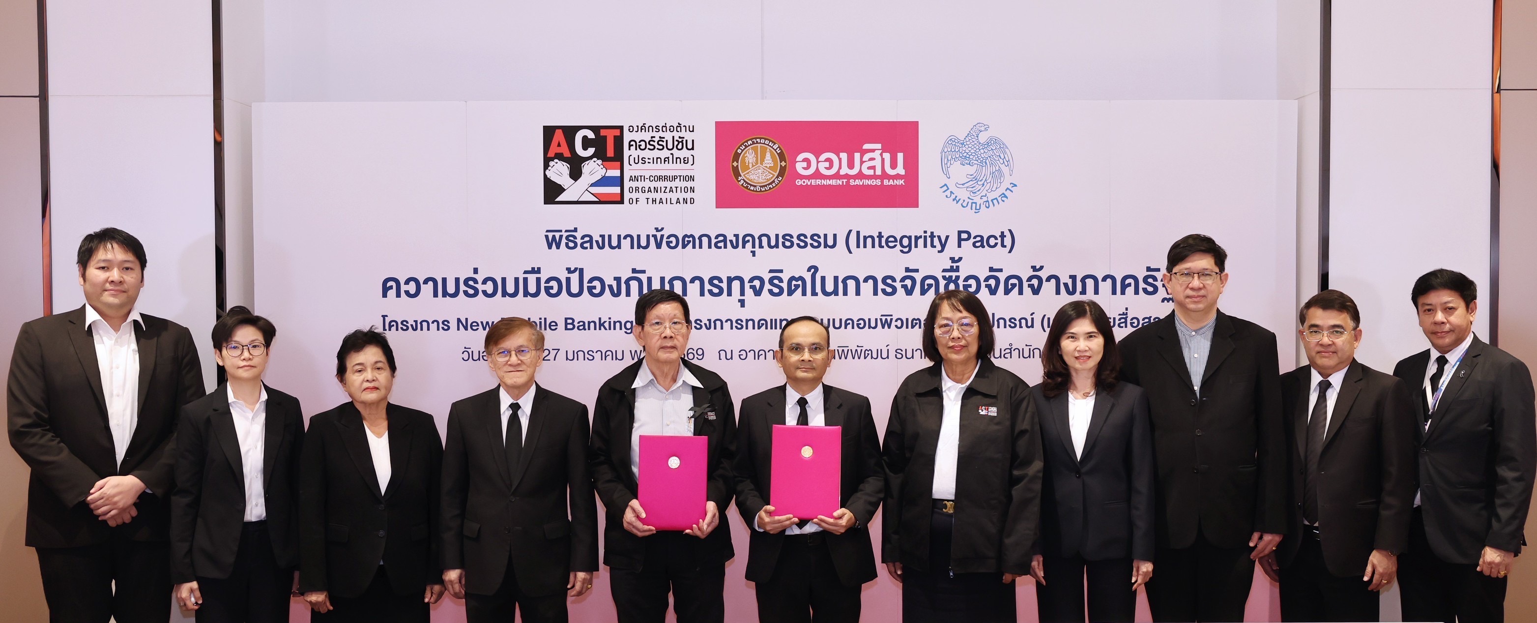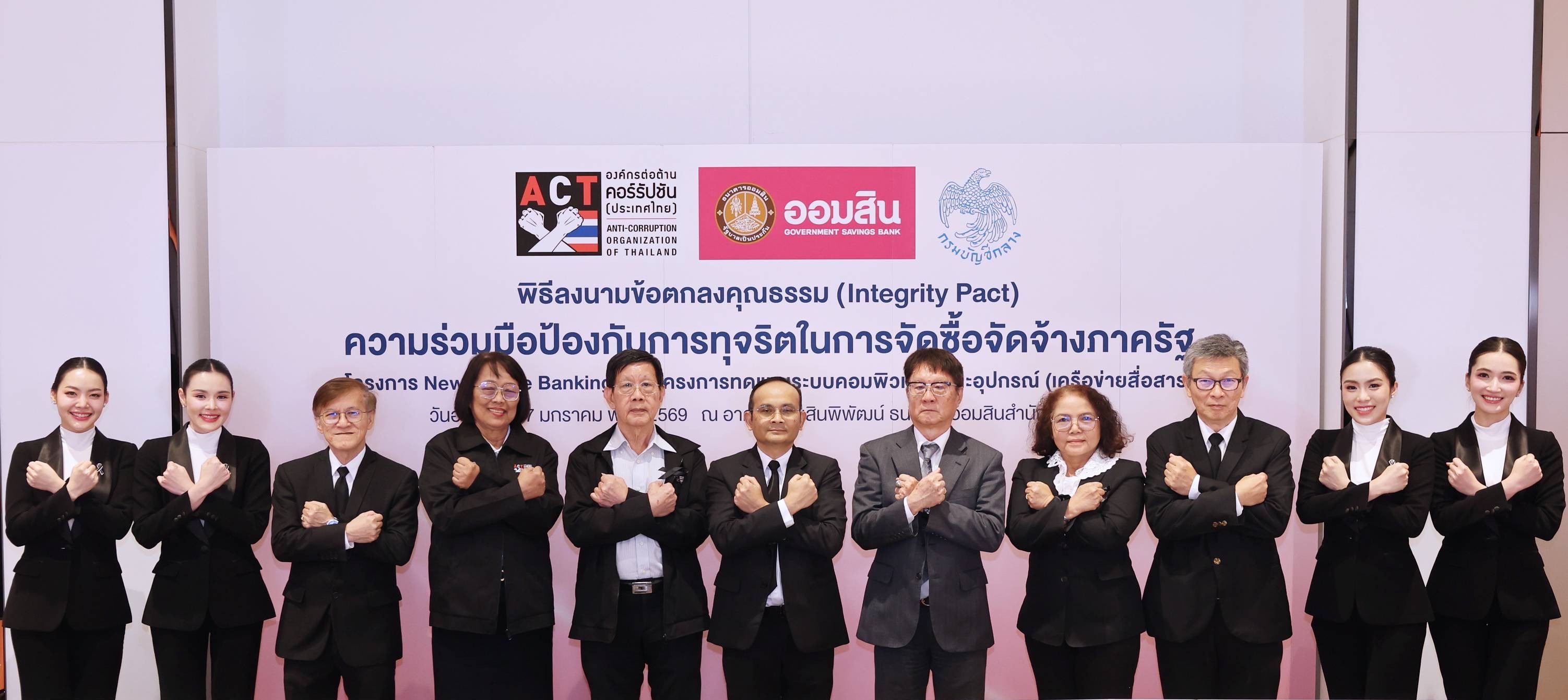 โดยมี นางสาวศิริพร เลิศสัตยสุกใส นายณัทธร โพธิแพทย์ รองผู้อำนวยการธนาคารออมสิน พร้อมด้วย นางสาวสิรินันท์ จิรดิลก กรรมการผู้จัดการ บริษัท จีเอสบี ไอที แมเนจเม้นท์ จำกัด ในฐานะกรรมการโครงการ และนายกิตติเดช ฉันทังกูล ผู้อำนวยการองค์กรต่อต้านคอร์รัปชัน (ประเทศไทย) ร่วมเป็นสักขีพยาน ณ อาคารออมสินพิพัฒน์ ธนาคารออมสิน สำนักงานใหญ่ เมื่อวันที่ 27 มกราคม 2569