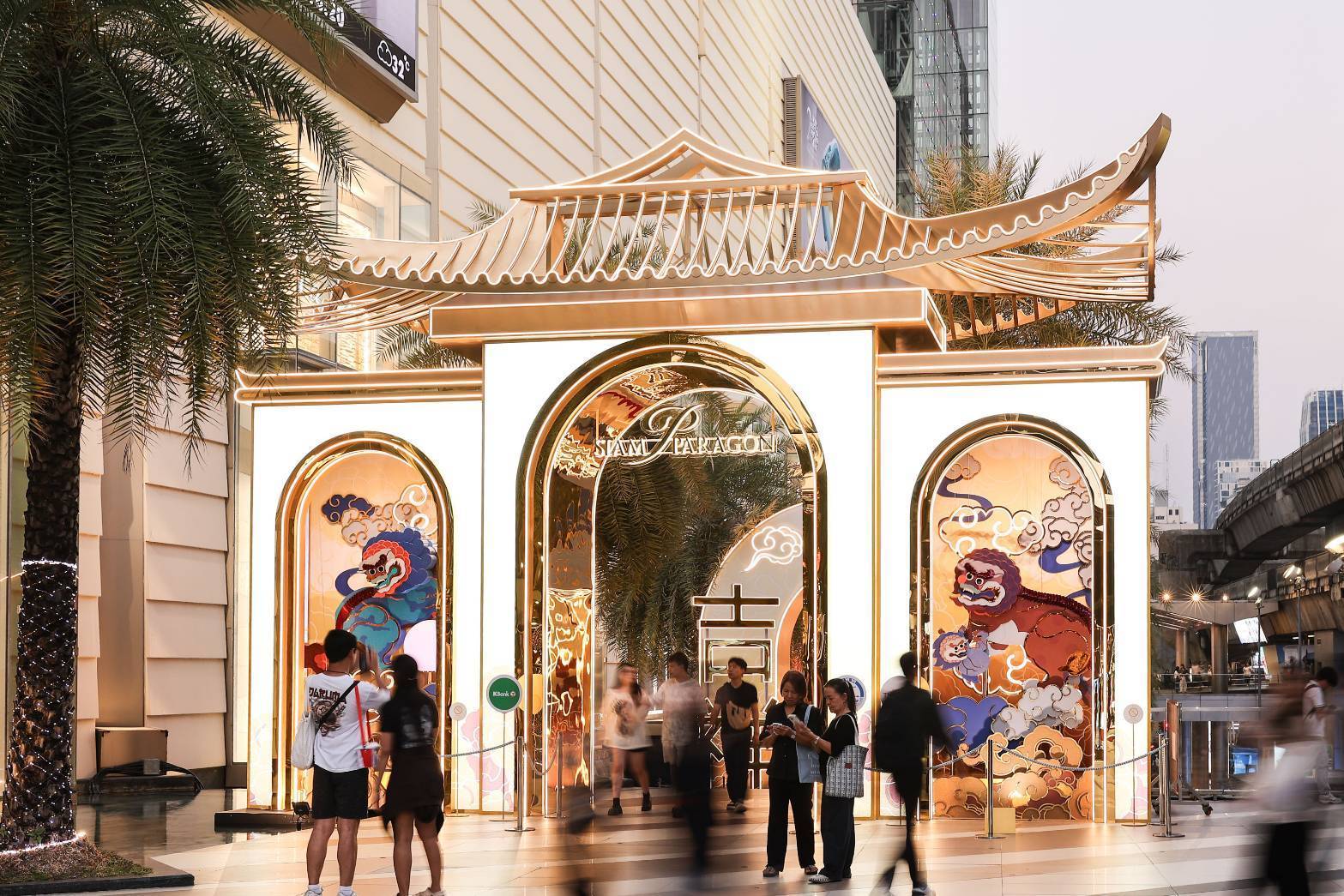 อีกหนึ่งไฮไลต์ห้ามพลาด สยามพารากอน เนรมิต ผลงานอาร์ต อินสตอลเลชั่น “The Fortune Guardians” บริเวณพื้นที่ โซนจีเวล และ คาสเคด ชั้น M ให้กลายเป็นแลนด์มาร์กแห่งงานศิลป์รับปีใหม่จีน โดยถ่ายทอดภาพสิงโตคู่ผ่านจังหวะและลีลาแห่งการเฉลิมฉลอง ราวกับกำลังเต้นรำอย่างมีชีวิตชีวาและเปี่ยมความหมายในทุกท่วงท่า สะท้อนพลังอันสมดุลระหว่างสติปัญญา ความมั่งคั่งอุดมสมบูรณ์ การสืบทอด และการคุ้มครอง เปรียบเสมือนคำอวยพรอันเป็นมงคลในช่วงเริ่มต้นปีใหม่ ผลงานชิ้นนี้เปรียบเสมือนการเปิดประตูต้อนรับพลังงานดี เชื้อเชิญให้โชคลาภและความเบิกบานหลั่งไหลเข้ามาและแผ่ขยายไปสู่ผู้คน พร้อมต้อนรับนักท่องเที่ยวจากทั่วโลก ออกแบบโดย สุทธิภา คำแย้ม ศิลปินและนักวาดภาพประกอบ ที่มีผลงานร่วมกับแบรนด์นานาชาติ