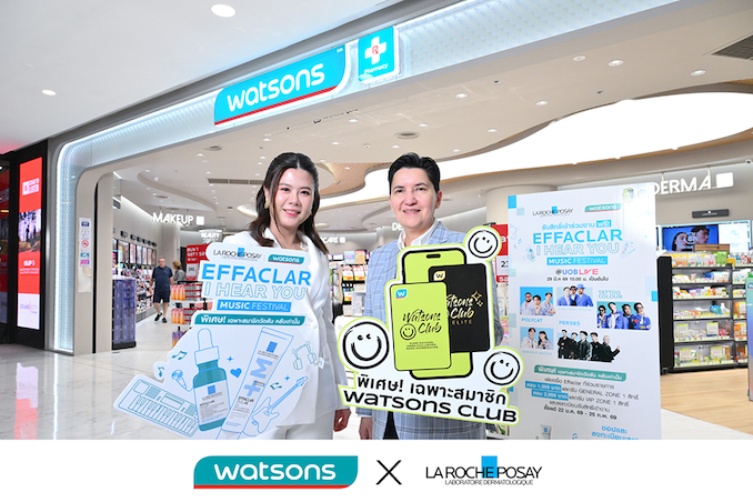 วัตสัน ประเทศไทย ผู้นำร้านเพื่อสุขภาพและความงามอันดับหนึ่งของประเทศ เดินหน้ายกระดับประสบการณ์รูปแบบใหม่แก่สมาชิกวัตสัน คลับ ให้เหนือกว่าการชอปปิงสินค้า โดยผนึกกำลังพันธมิตรคนสำคัญ ลา โรช-โพเซย์ (La Roche-Posay) แบรนด์ผลิตภัณฑ์บำรุงผิวที่แพทย์ผิวหนังทั่วโลกแนะนำเป็นอันดับ 1 จากฝรั่งเศส ในเครือลอรีอัล กรุ๊ป ร่วมสร้างปรากฏการณ์ความร่วมมือครั้งยิ่งใหญ่ ในกิจกรรมสุดพิเศษ “EFFACLAR I HEAR YOU MUSIC FESTIVAL” เทศกาลดนตรีรูปแบบใหม่ ครั้งแรกในประเทศไทยที่ผสานศาสตร์แห่งการดูแลผิวเข้ากับพลังบำบัดของดนตรี ตอบโจทย์ไลฟ์สไตล์ผู้บริโภคยุคใหม่ ภายใต้คอนเซปต์ “ฮีลสิว ฮีลใจ”