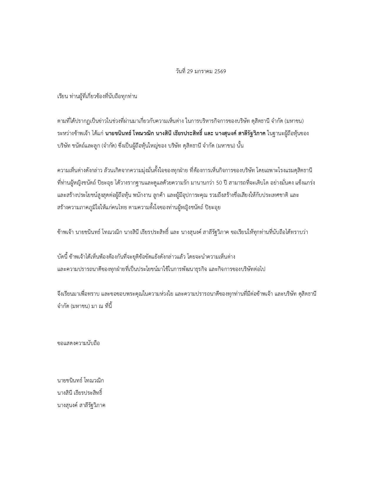 แถลงการณ์ร่วมจากคุณชนินทธ์ คุณสินี และคุณสุนงค์