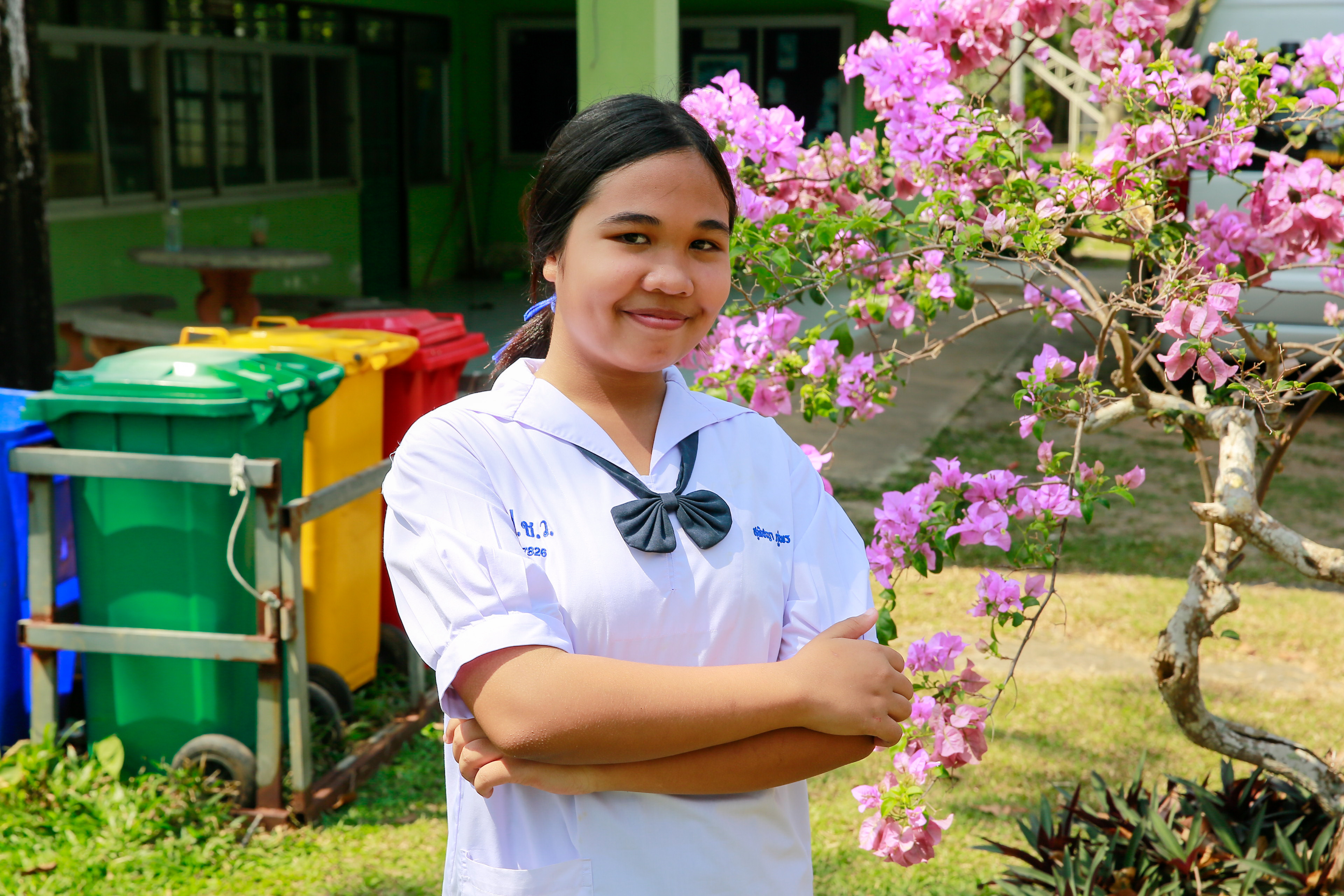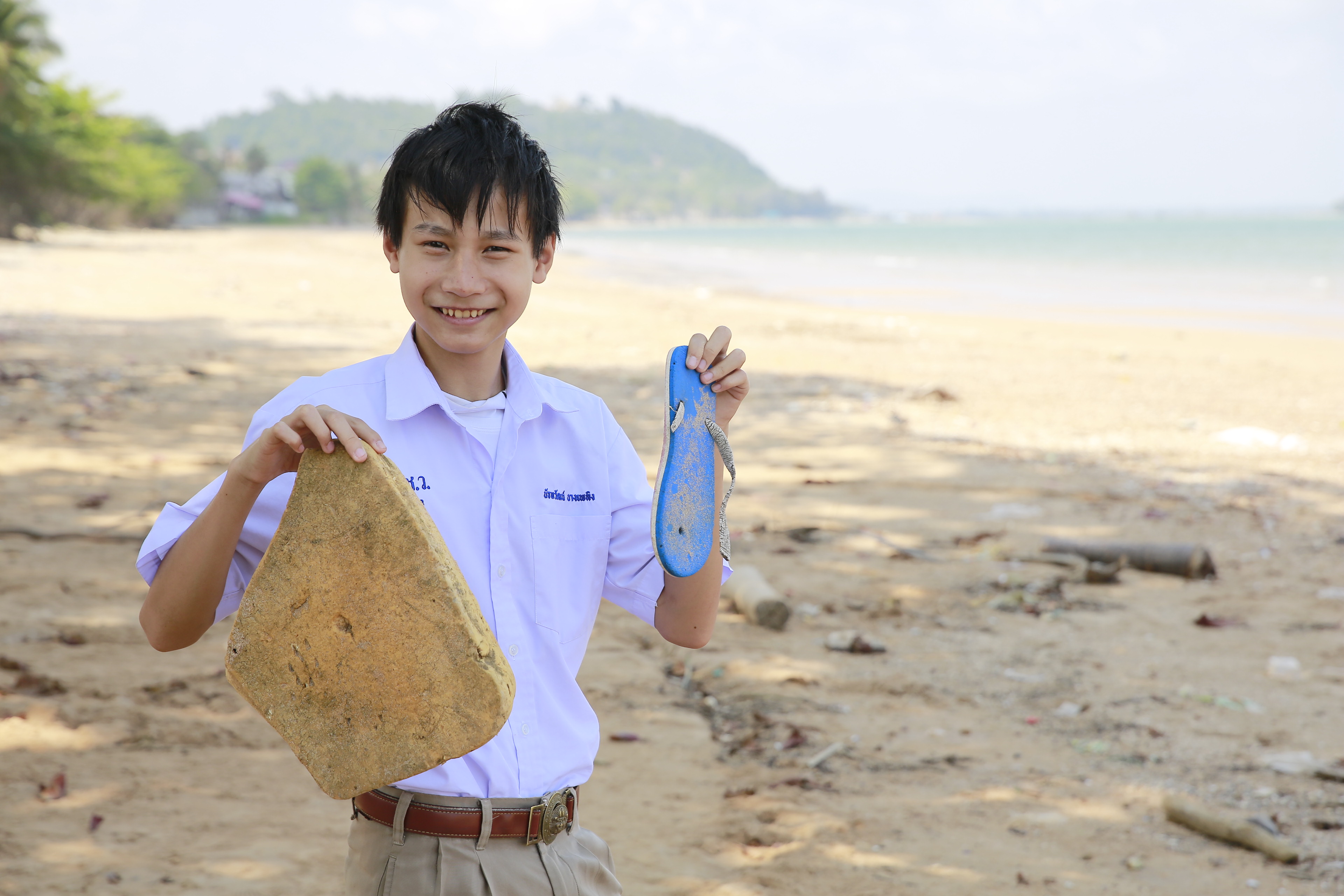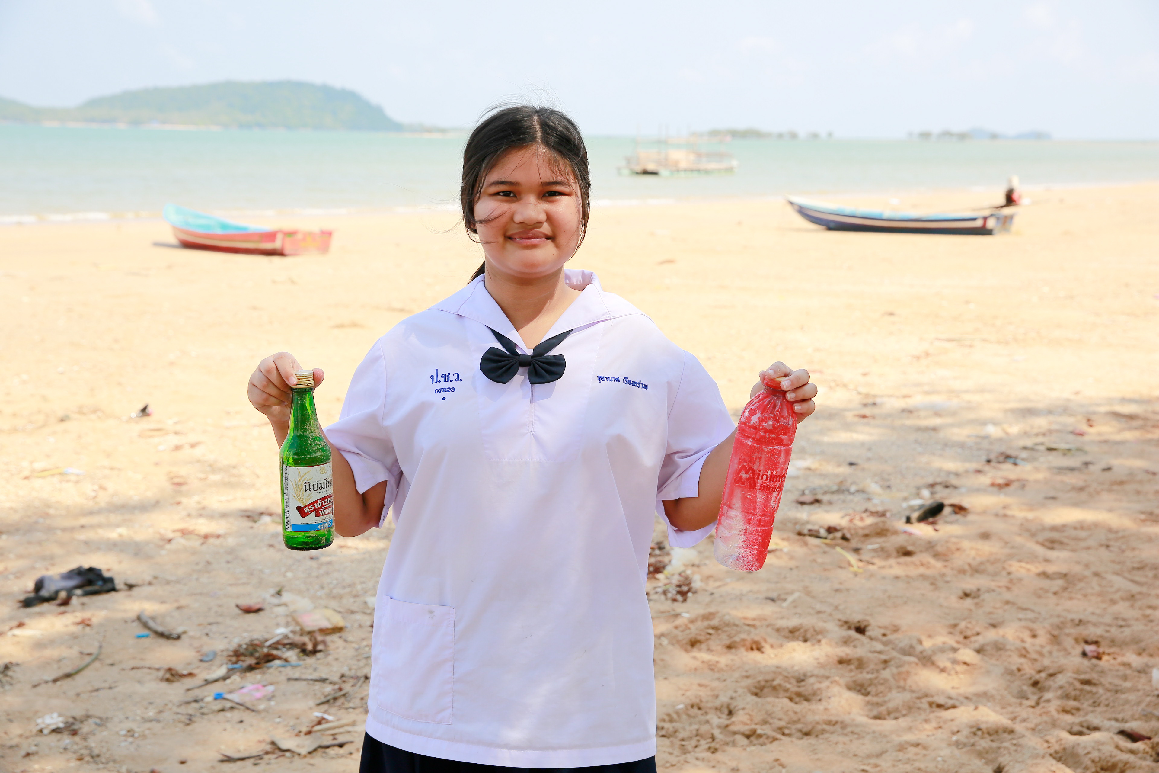 น้องอันอัน - เด็กหญิงสุพิชญา ภู่พร เล่าว่า ชายหาดแห่งนี้เปรียบเสมือนสนามเด็กเล่นของพวกหนูเลยค่ะ ปกติจะชอบมาเดินเล่น รับลม และพักผ่อนกับเพื่อน ๆ เป็นประจำหลังเลิกเรียน เพราะบรรยากาศเงียบสงบและสวยงามมาก เวลาเห็นขยะเกลื่อนอยู่ตามชายหาดพวกหนูก็จะช่วยกันเก็บ แต่พอเข้าช่วงฤดูกาลท่องเที่ยวทีไรปริมาณขยะจะเยอะขึ้นจนน่าใจหาย กิจกรรมวันนี้ทำให้หนูเข้าใจลึกซึ้งขึ้นว่าการแยกขยะที่ถูกต้องช่วยโลกได้ยังไง หลังจากนี้หนูตั้งใจจะใช้ความรู้ที่ได้ไปบอกต่อไปเตือนพี่ ๆ นักท่องเที่ยว หรือแม้แต่บรรดาพ่อค้าแม่ค้า ถ้าเห็นใครทิ้งไม่ถูกที่ หนูจะรีบเข้าไปแนะนำทันที เพื่อรักษาหาดทรายของหนูให้สะอาดและน่ามองแบบนี้ไปนาน ๆ ค่ะ